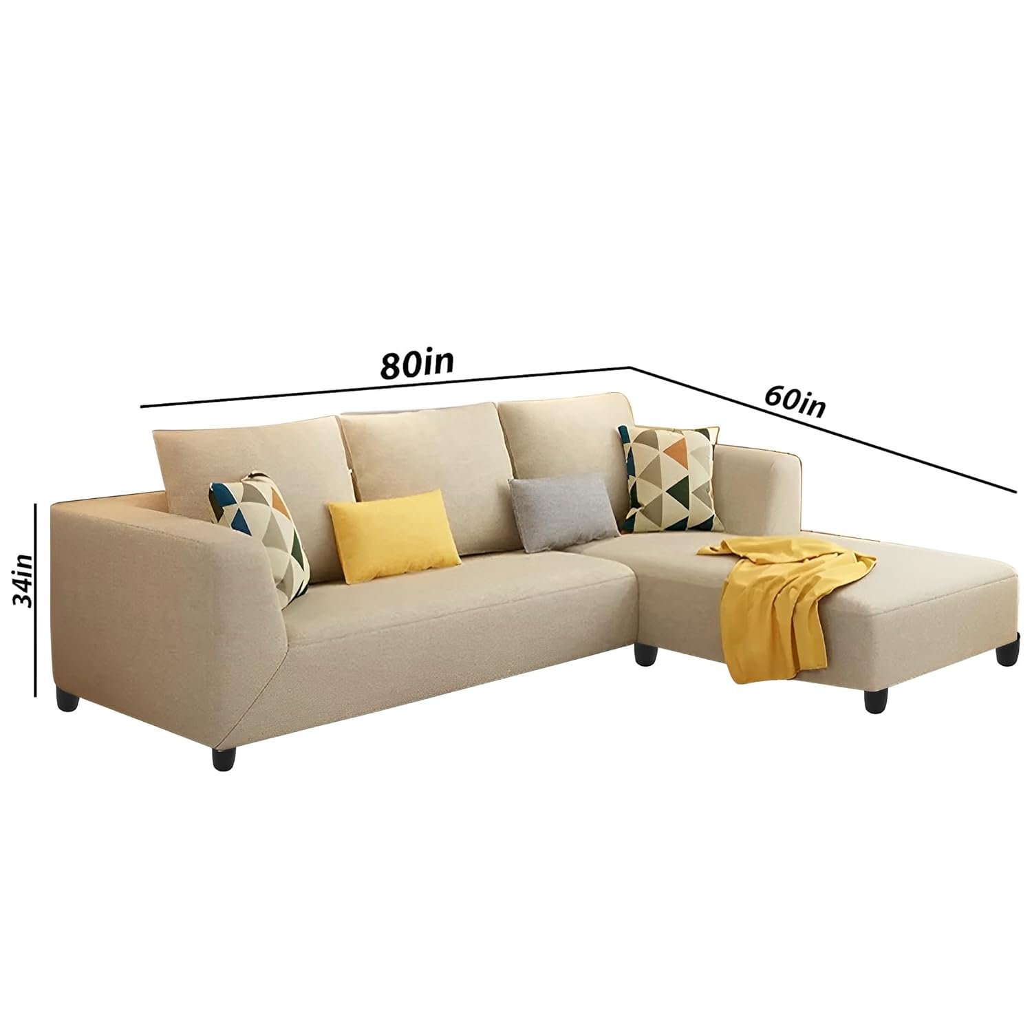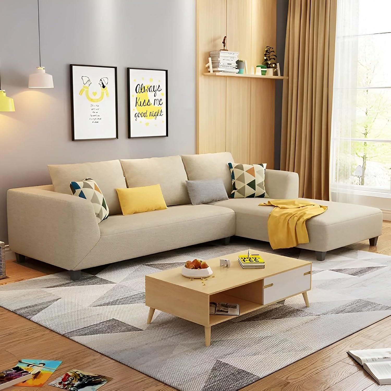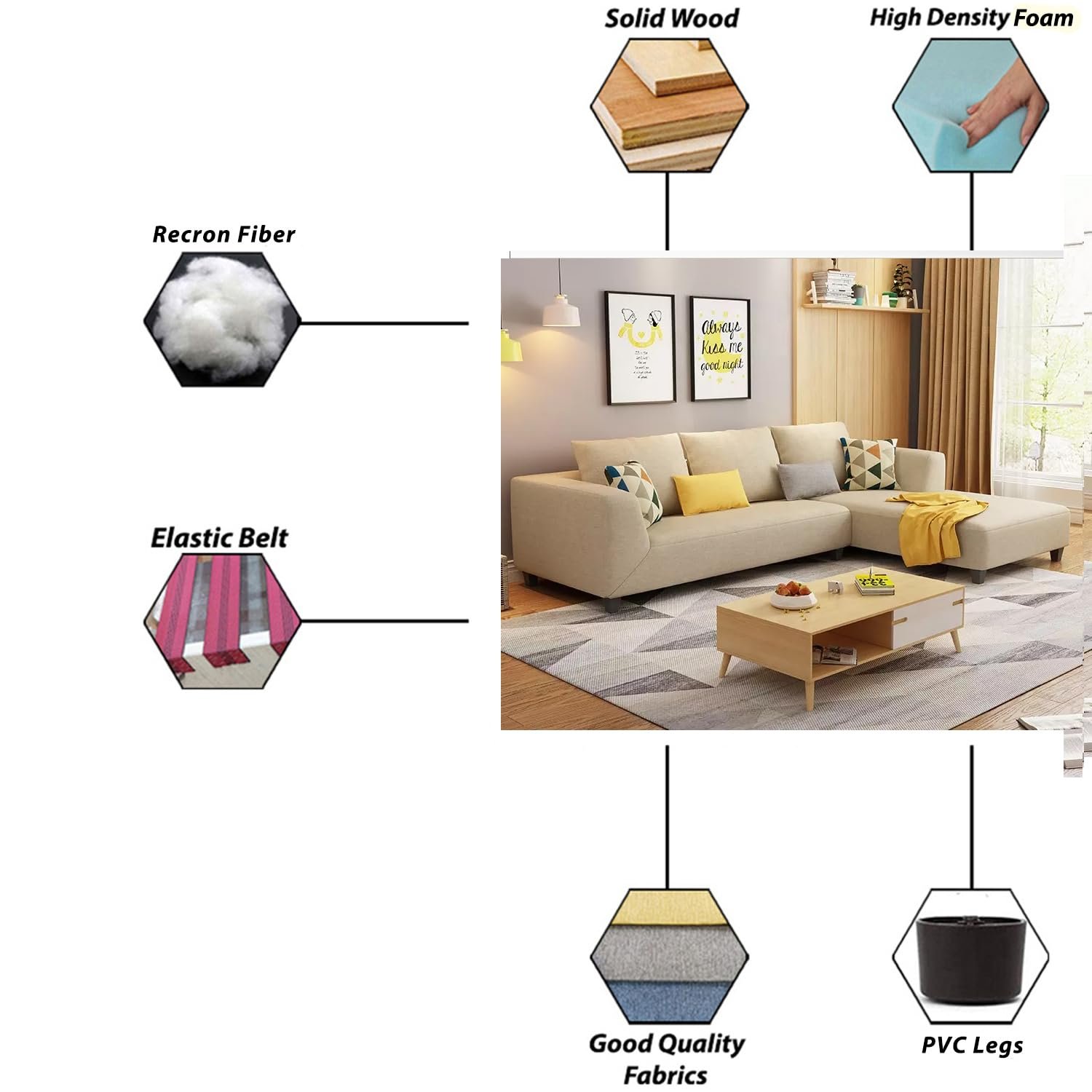 Minta RHS 4 Seater L Shape Sofa Set for Living Room (Cream Fabric) Premium Fabric Sofa | 4-Person Sofa