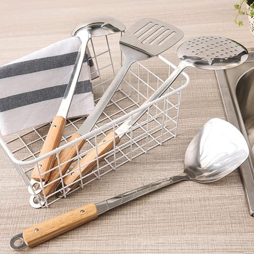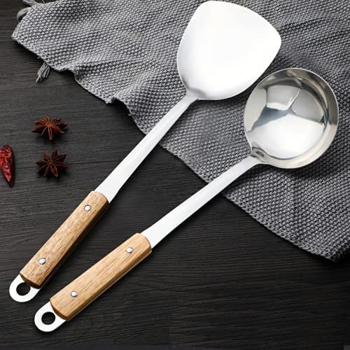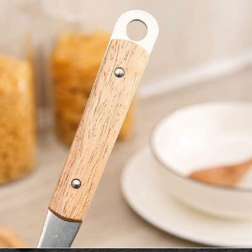 Mockery 304 Stainless Steel Kitchen Long Soup Ladle, Professional Kitchen Large Serving Spoon with Wooden Handle for Soup, Chili, Gravy, Salad Dressing Or Other Foods in Restaurant and Home, 13 inch