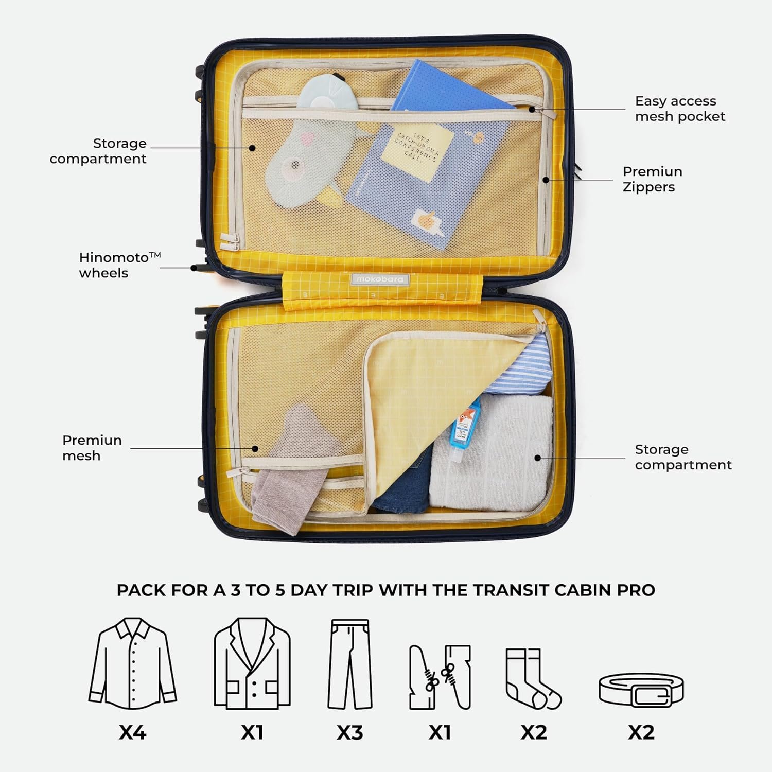 MOKOBARA Polycarbonate The Transit Cabin Pro Luggage Small Cabin Size Poly-Carbonate Hard Sided 8 Hinomoto Wheels Suitcase for Travelling (We Meet Again Sunray, 56 cm, Blue)