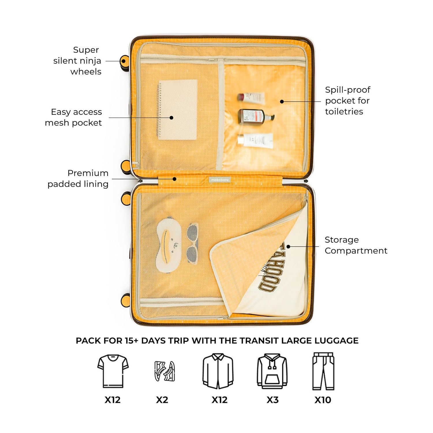 MOKOBARA The Transit Luggage Poly-Carbonate Hard Sided 8 Silent Ninja Wheels for Travelling (Still Loading Brownray (Limited Edition), Check-in Large)