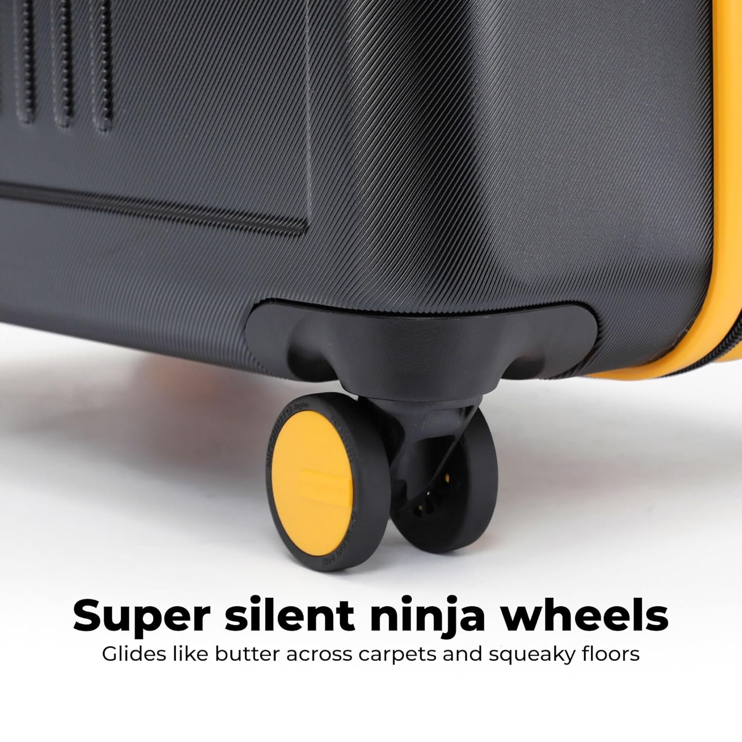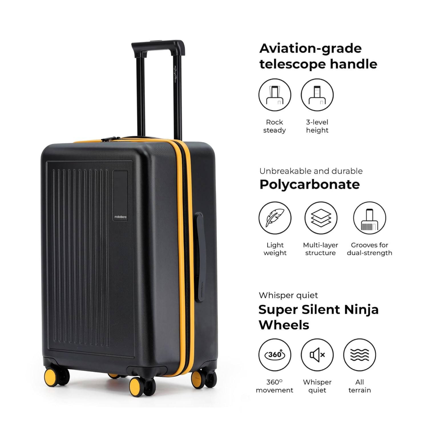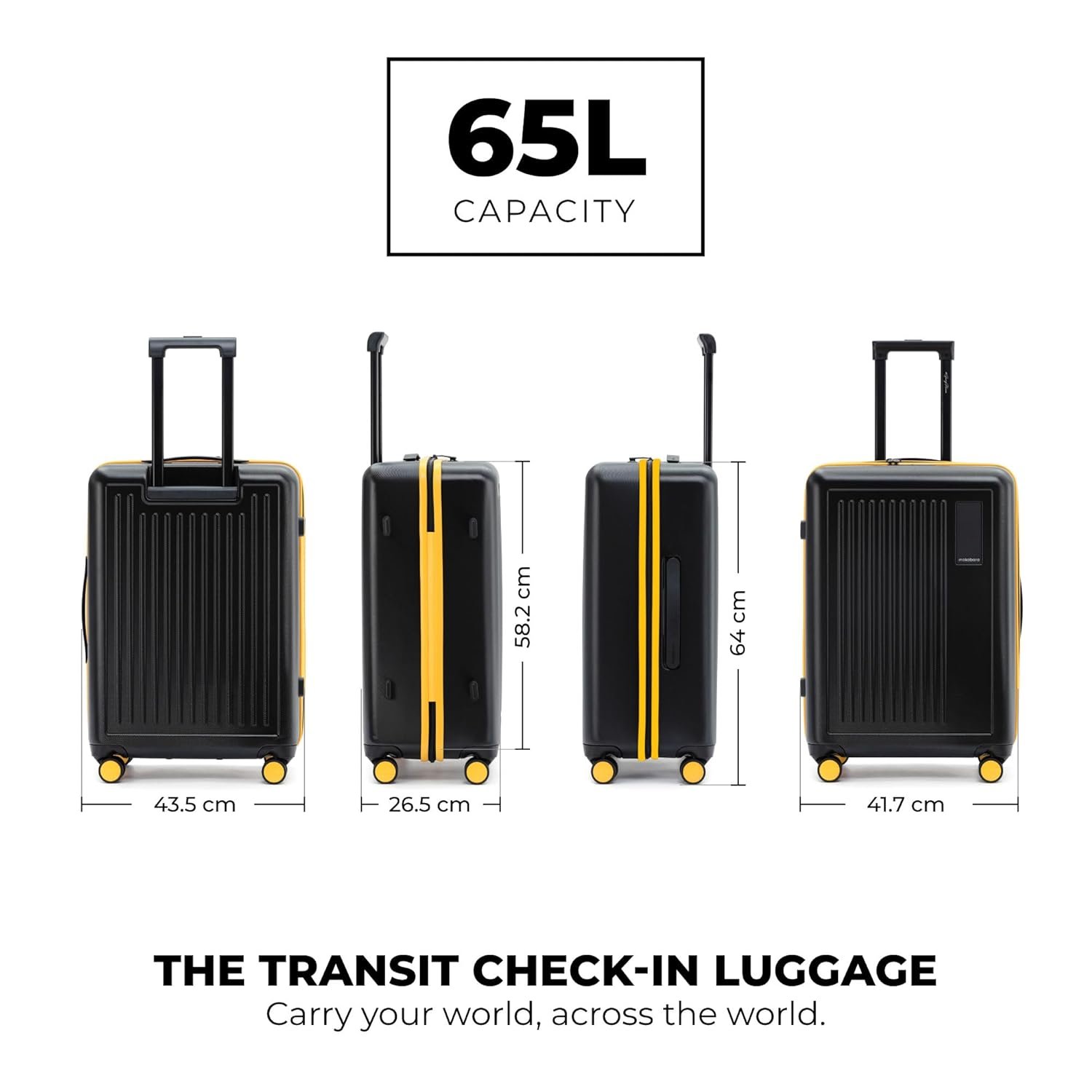 MOKOBARA The Transit Luggage|65L Capacity TSA Lock Silent Ninja Wheels Telescopic Handle Polycarbonate Hardshell|Ideal for Travel & Weekend Getaways (Black Check-in Medium)
