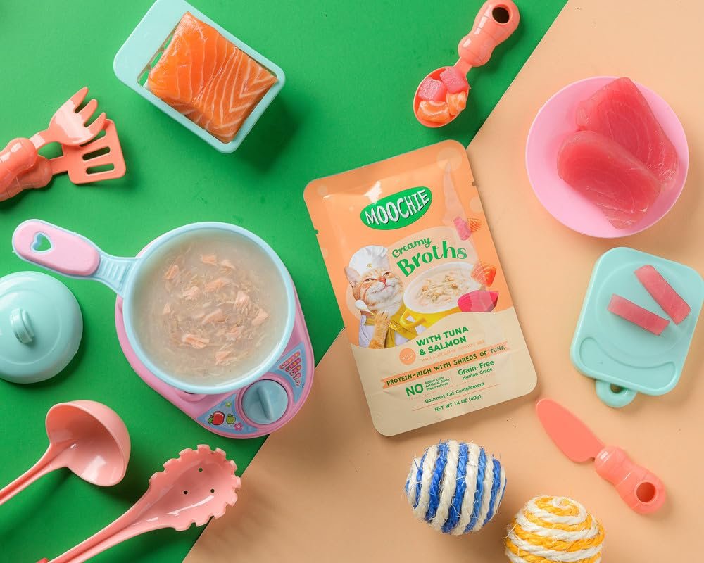 Moochie Creamy Broths Cat Soup with Tuna and Salmon no Added Flavour and Preservatives Grain Free Human Grade Size : 40 GMS Pouch (12)
