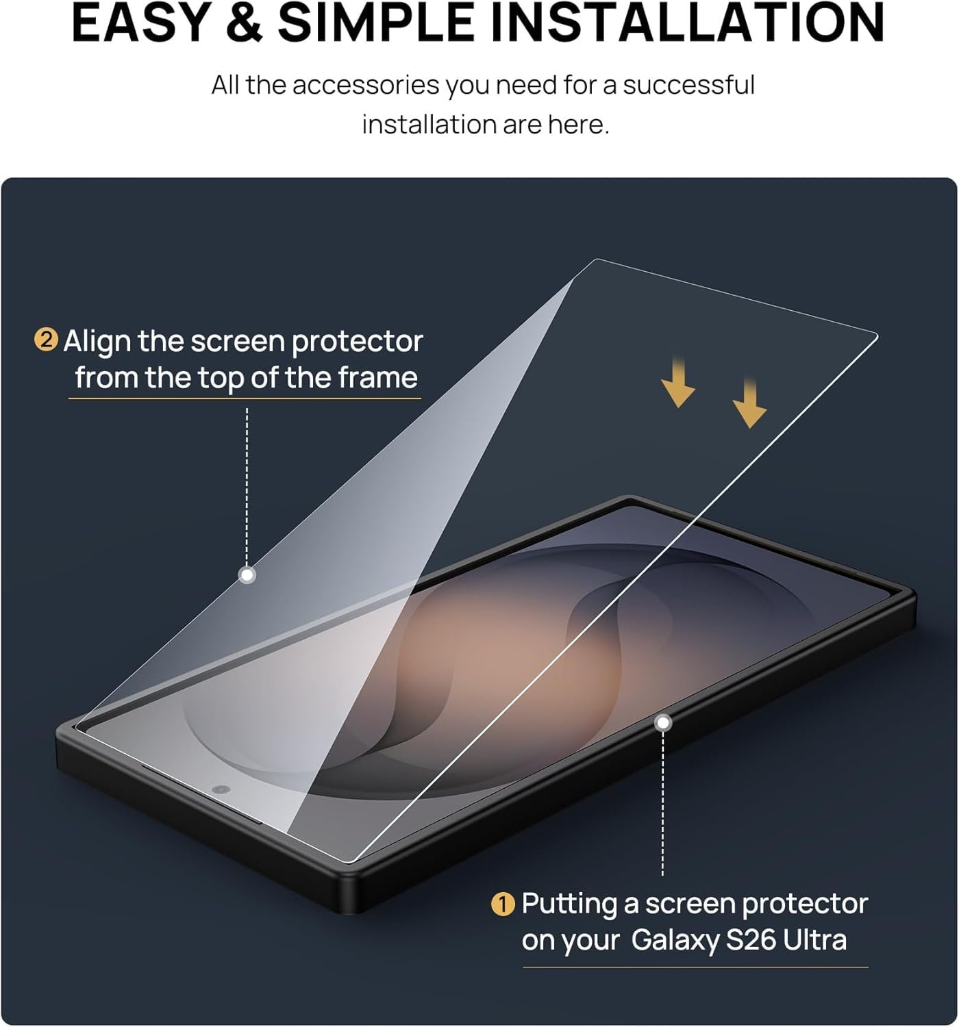 Mr.Shield [2 Pack] Screen Protector for Samsung Galaxy S26 Ultra, 9H Hardness Tempered Glass Screen Guard, Military Grade Shatterproof, Easy Installation Tray, HD Clarity, Case-Friendly