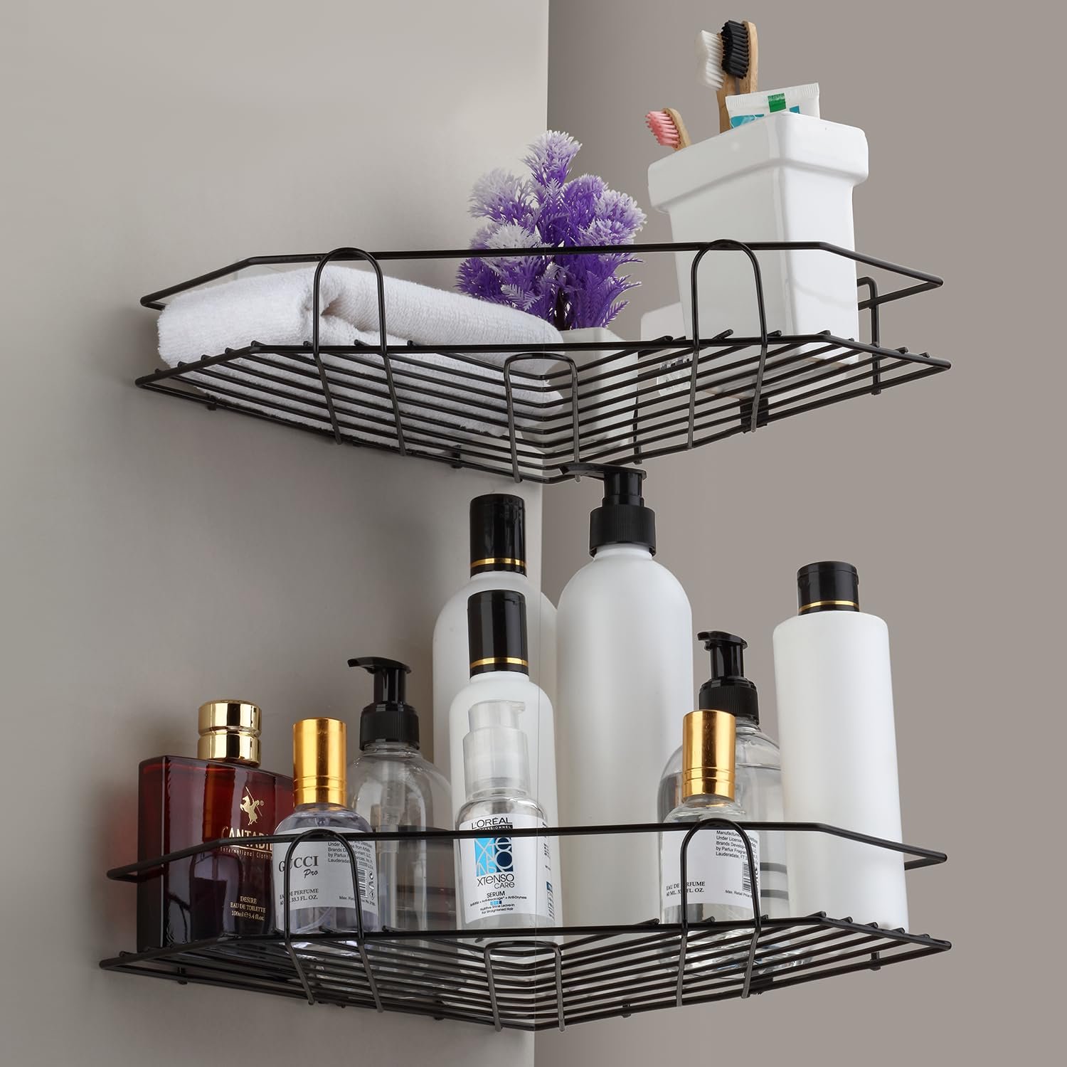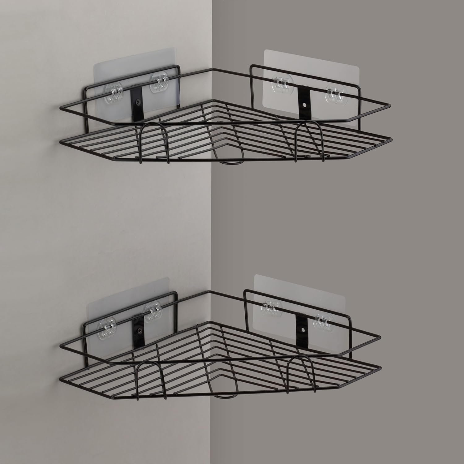 Multipurpose Bathroom/Kitchen Corner Storage Organizer Wall Mounted Rack Shelf Shower Caddy (No Drilling – Shelf Adhesive) Bathroom Accessories Storage Rack (Black, Pack Of 2)