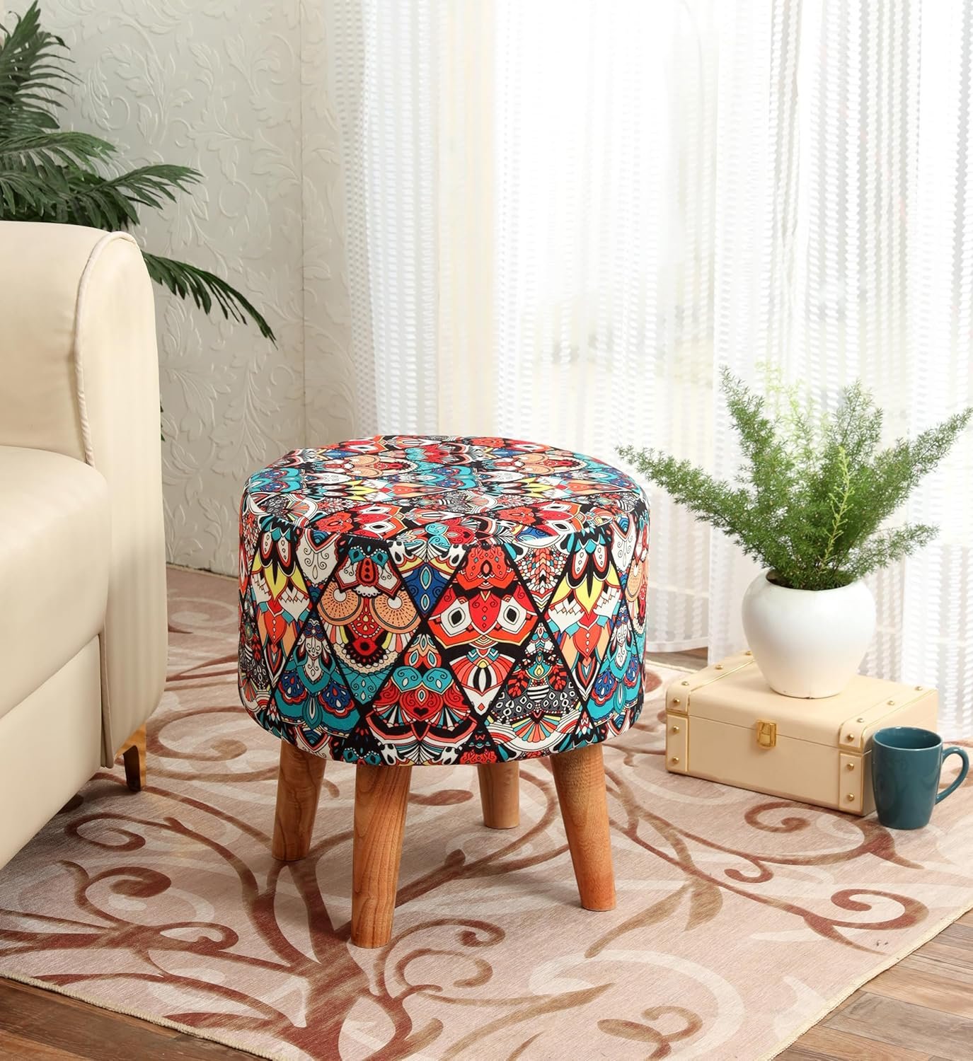 Be the first to review “NACIA Printed Sitting Ottoman Stool (16X16X17 Inches) for Living Room, Bedroom | Wooden Pouffes for Sitting & Footrest | Puffy Foot Stool Furniture for Home Decor | Dressing Table Ottoman (Multicross)”