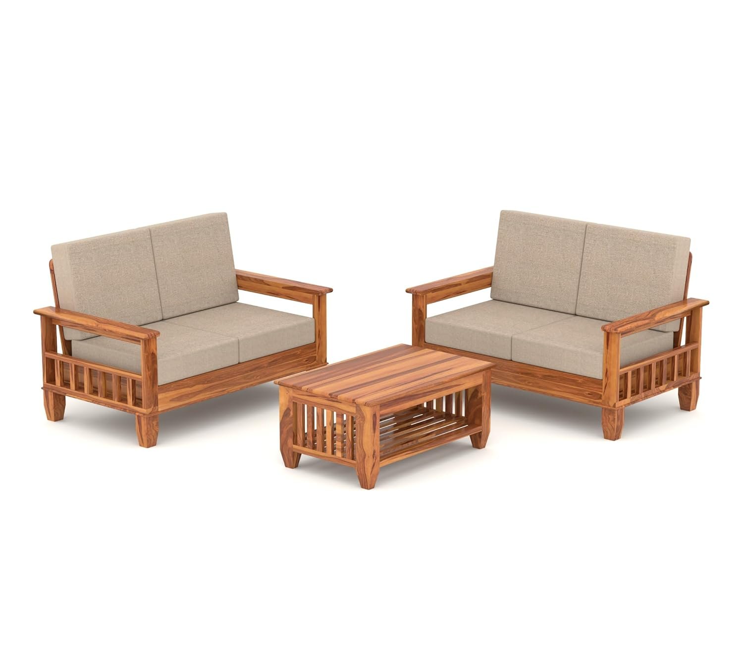 NATRAJ ART & CRAFT Sheesham Wooden 4 Seater Sofa Set for Living Room | Rosewood 4 Seater Cushion Sofa Set with Side Newspaper Holder for Home & Office (Honey, 2+2 Seater)