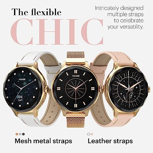 Noise Diva Smartwatch with Diamond Cut dial, Glossy Metallic Finish, AMOLED Display, Mesh Metal and Leather Strap Options, 100+ Watch Faces, Female Cycle Tracker Smart Watch for Women (Gold Link)
