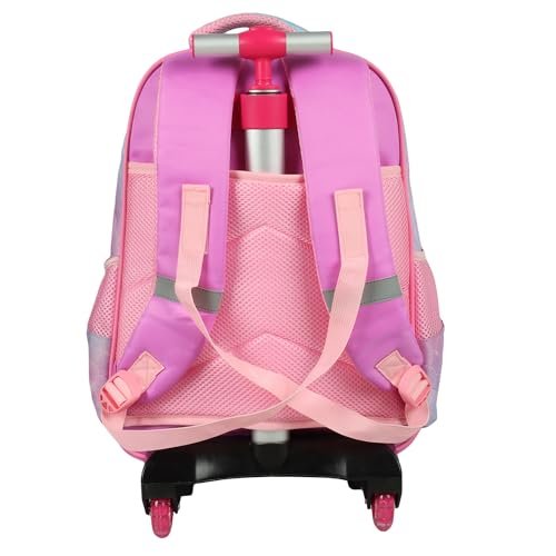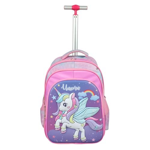 NOVEX Unicorn Kids Backpack Combo Set – 1 Lunch Box Bag & Stationary Pouch School Trolley Bags with 2 Wheels | 17 Inch Soft Polyester Spinner Luggage | Purple Carry-on Set for Kid Girls