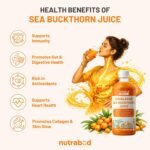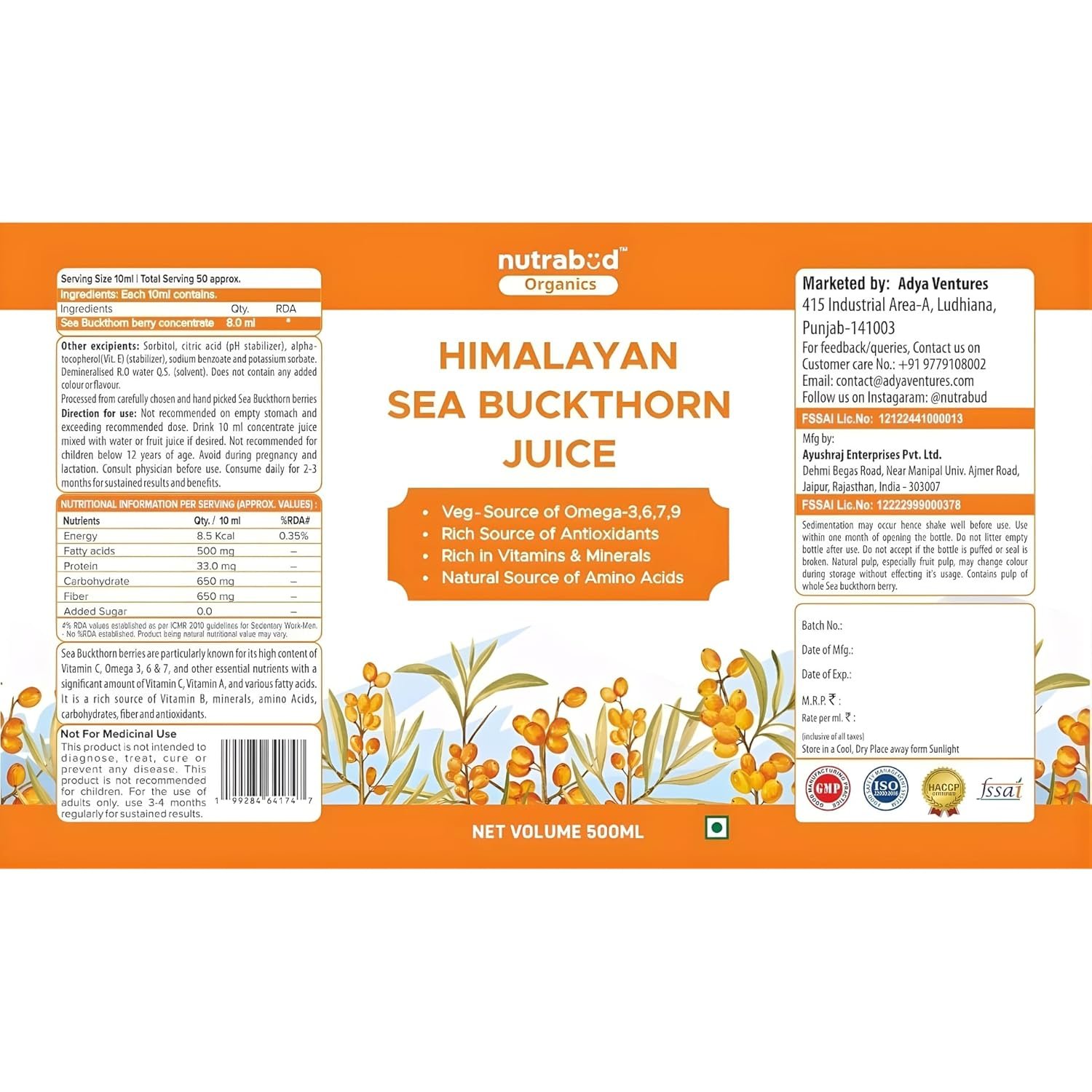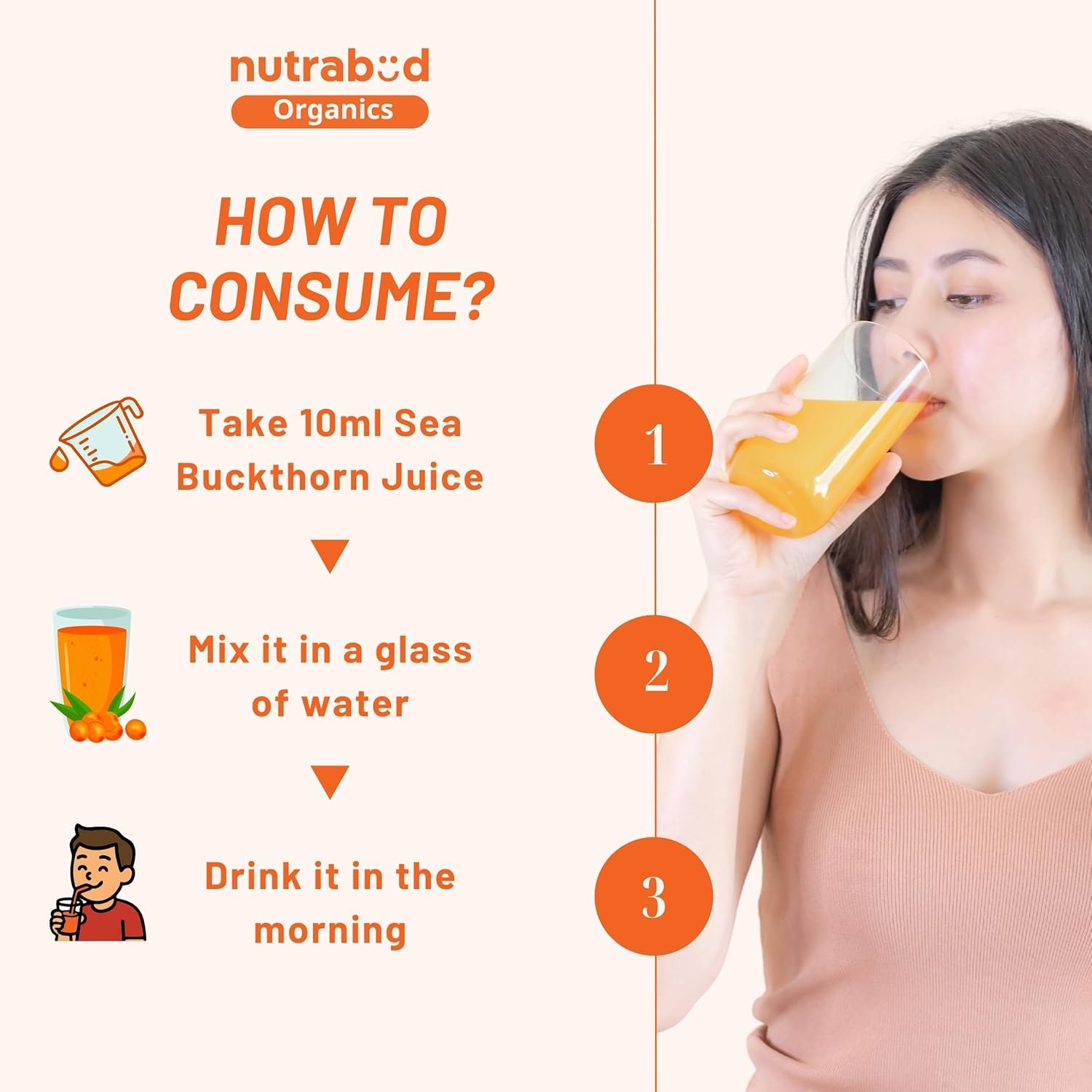 Nutrabud Organics Himalayan Sea Buckthorn Berry Juice – 500 ml – Natural Source of Vitamin C, Omega 3 6 7 9, Antioxidants For Immunity, Skin Glow & Gut Health – 50 Glasses (500ml (Pack of 1))