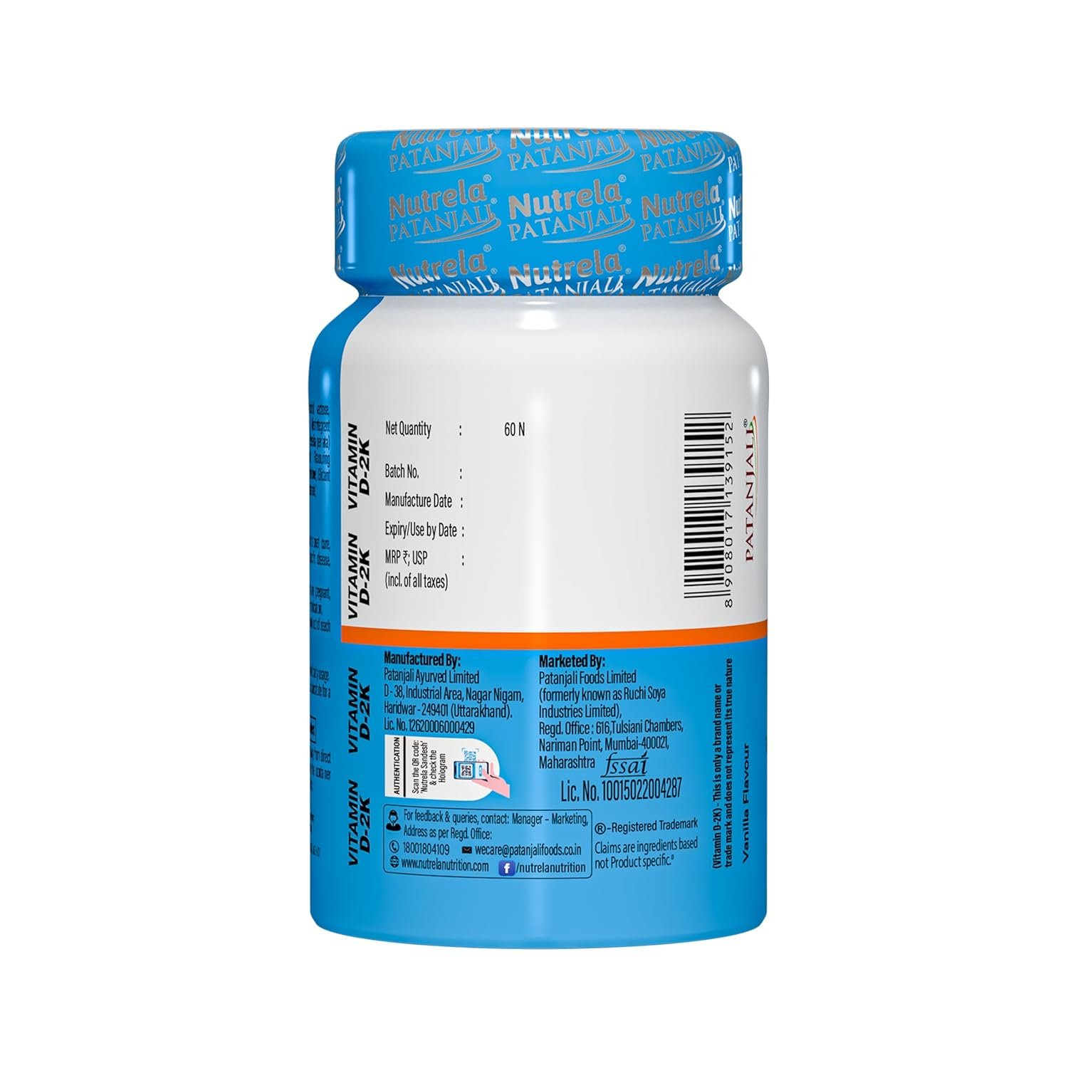 Be the first to review “NUTRELA PATANJALI VIT D2K NATURAL TAB- VANILLA, Pack of 60 tabs”