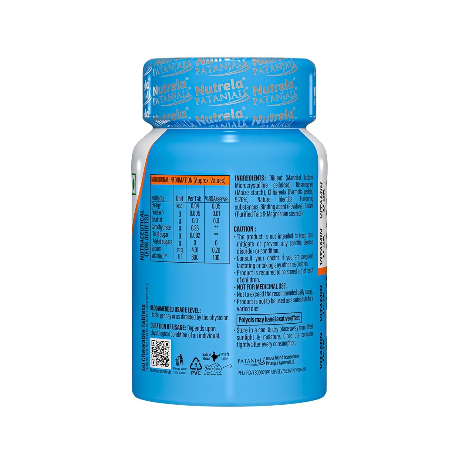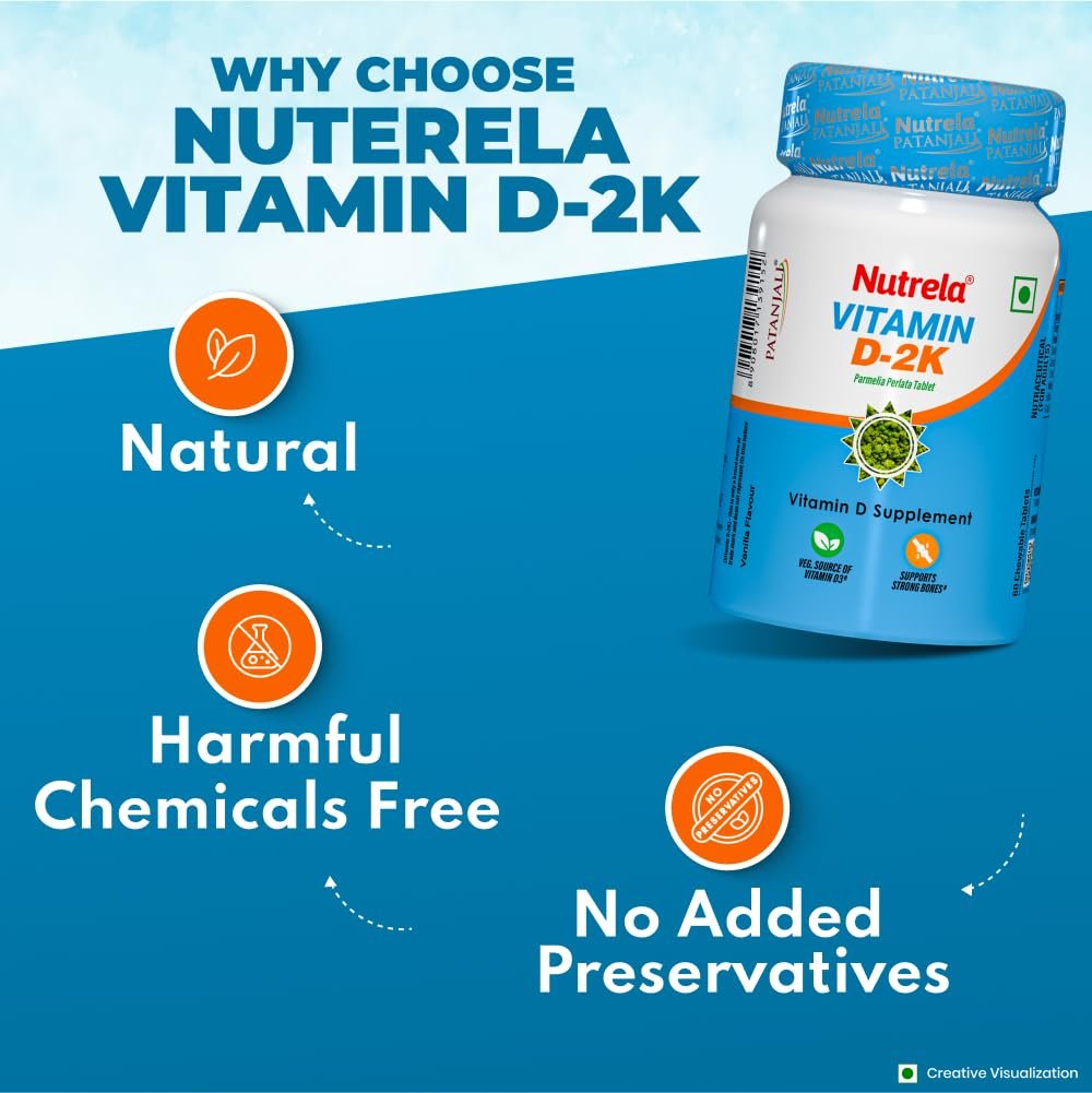 NUTRELA PATANJALI VIT D2K NATURAL TAB- VANILLA, Pack of 60 tabs