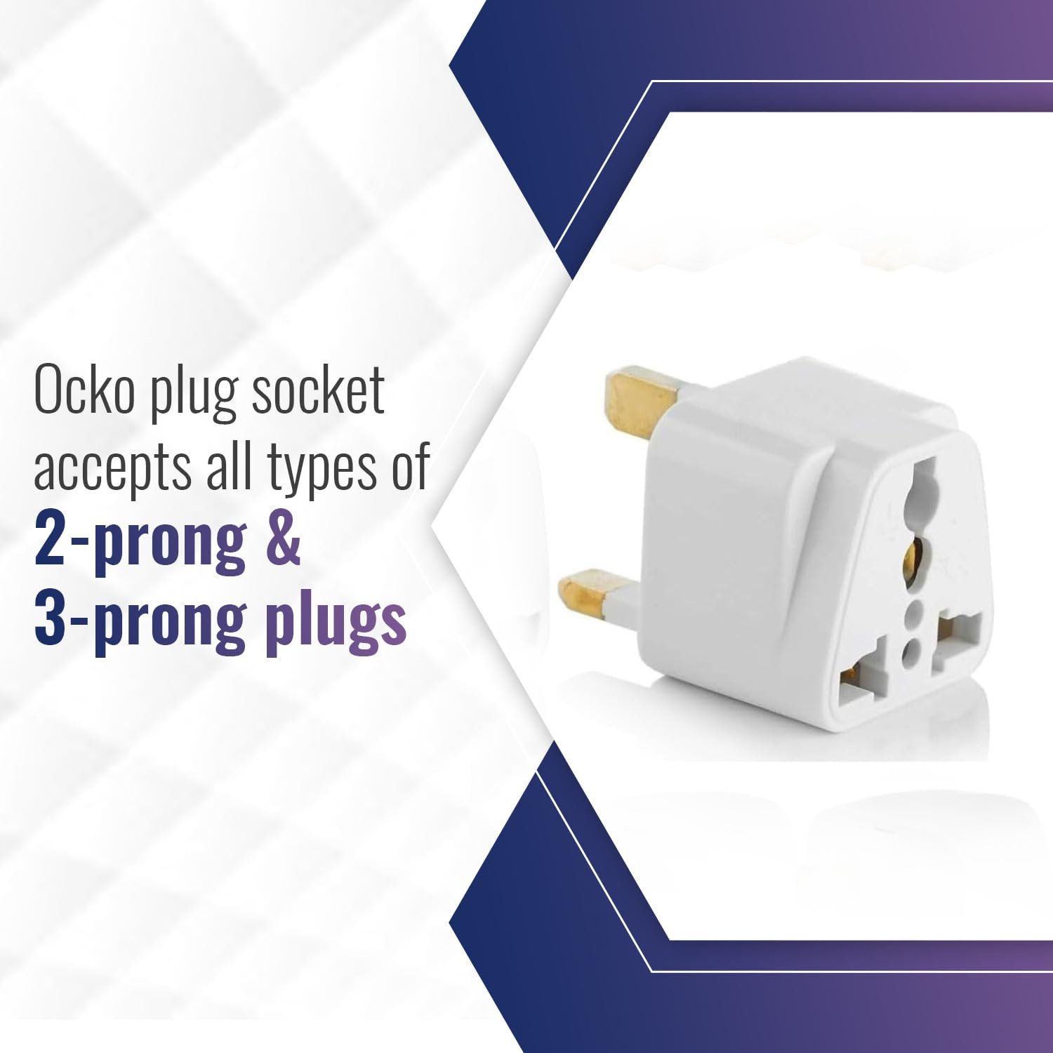 Ocko 3 Prong Pin Plug (Type G Adapter) | UK to Universal Computer Conversion Outlet Plug Adapter | Travel Companion for International Devices, Australia/New Zealand/China, UK (Pack of 10, White)