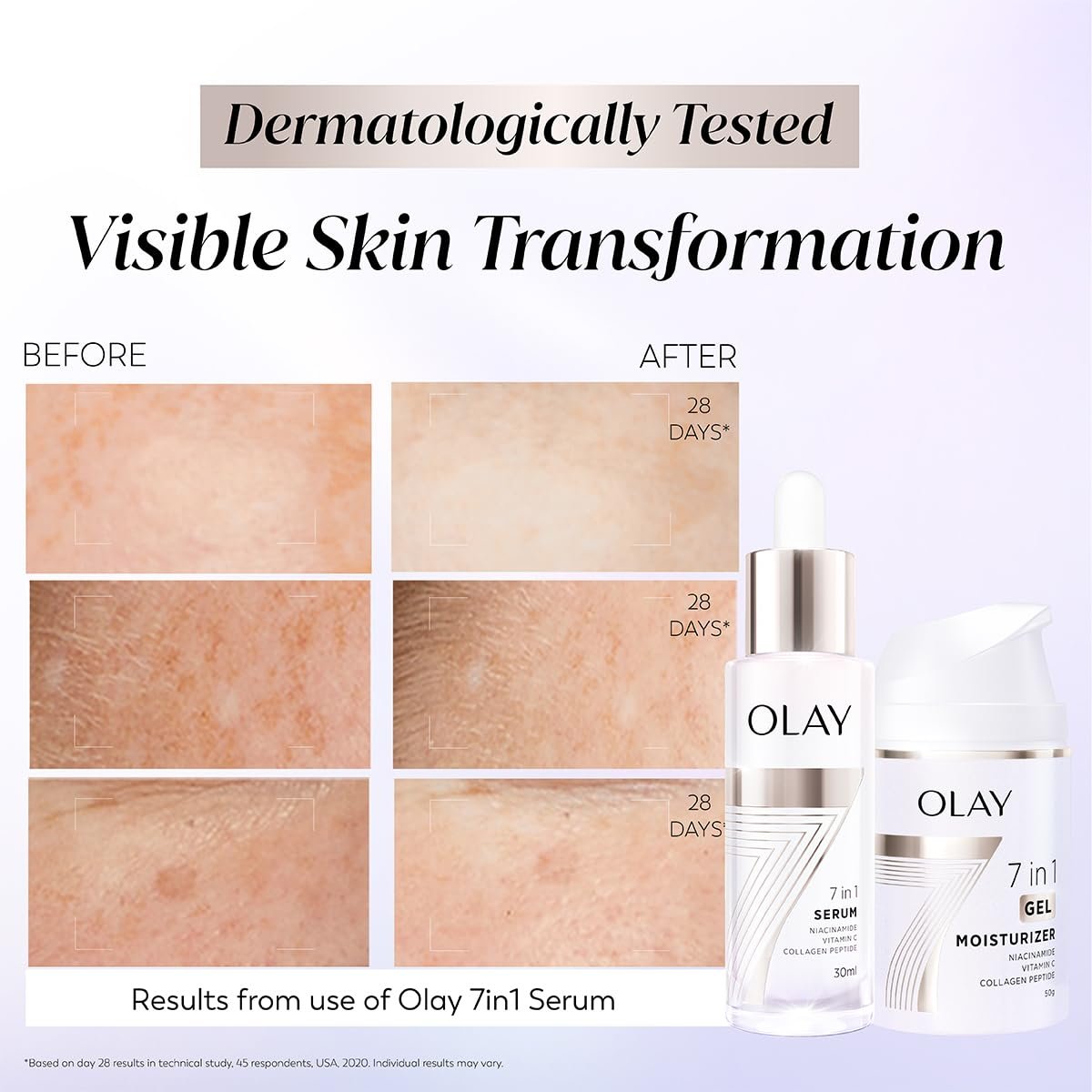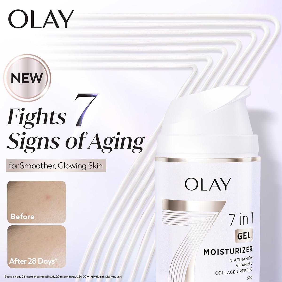 Olay 7in1 Ultra-light Gel Moisturizer | Niacinamide, Vitamin C, Collagen Peptides | Fights 7 Issues for Smooth & Glowing Skin | Normal to Oily Skin | Dermatologically Tested | Non Comedogenic | 50g