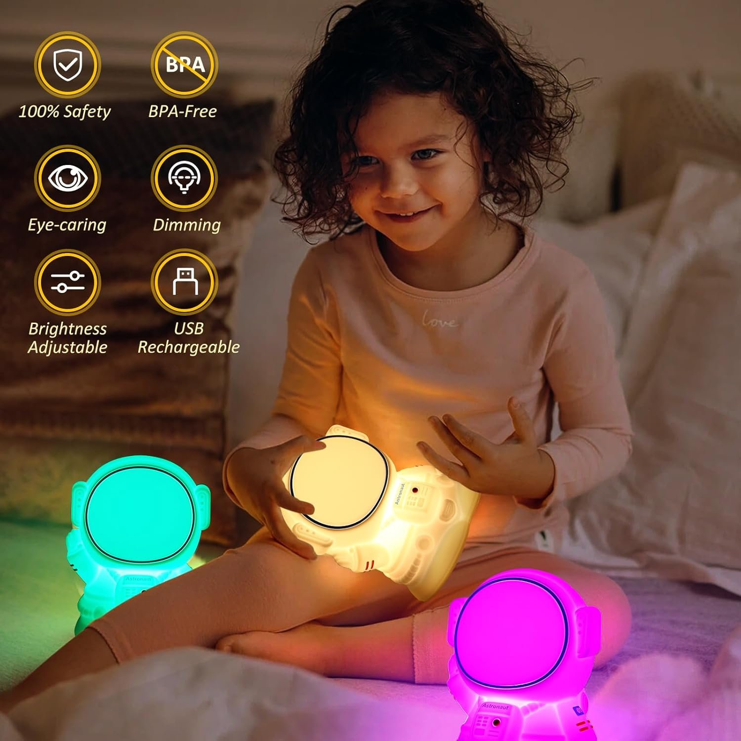 One94Store Astronaut Silicone Night Lamp for Kids | RGB Color-Changing LED Bedside Light with Touch Control & 8 Lighting Modes | Rechargeable Nursery Lamp for Bedroom & Gifting, Multicolor