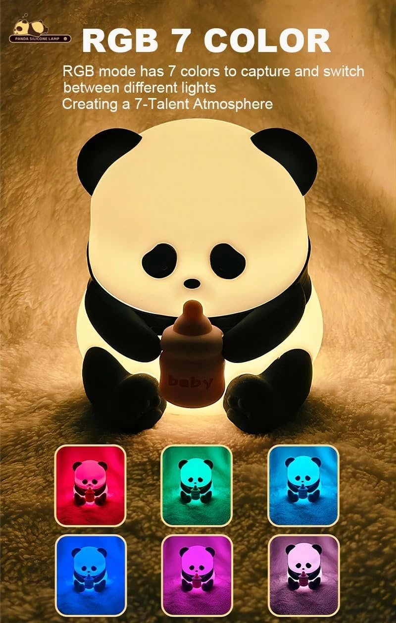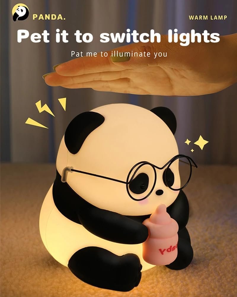 One94Store Panda LED Night Light with Glasses & Bottle – Soft Silicone Animal Lamp, Rechargeable & Portable for Kids Room, Nursery, Baby Shower Gift (Warm White)
