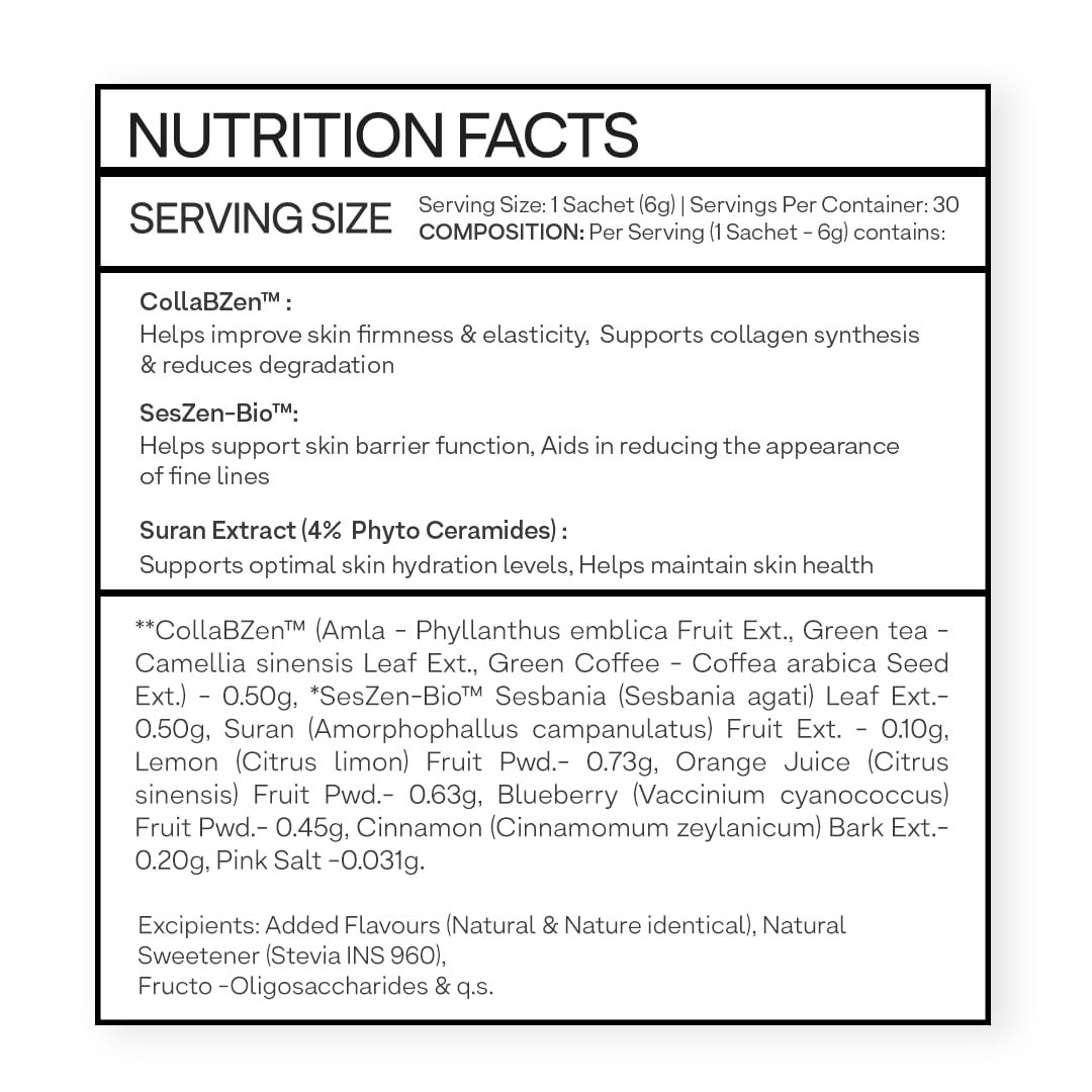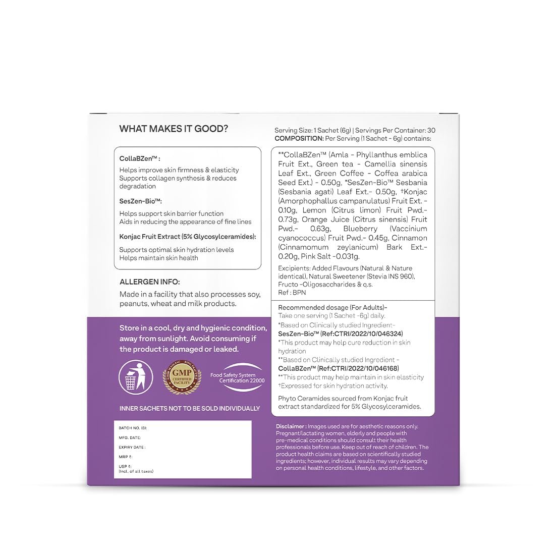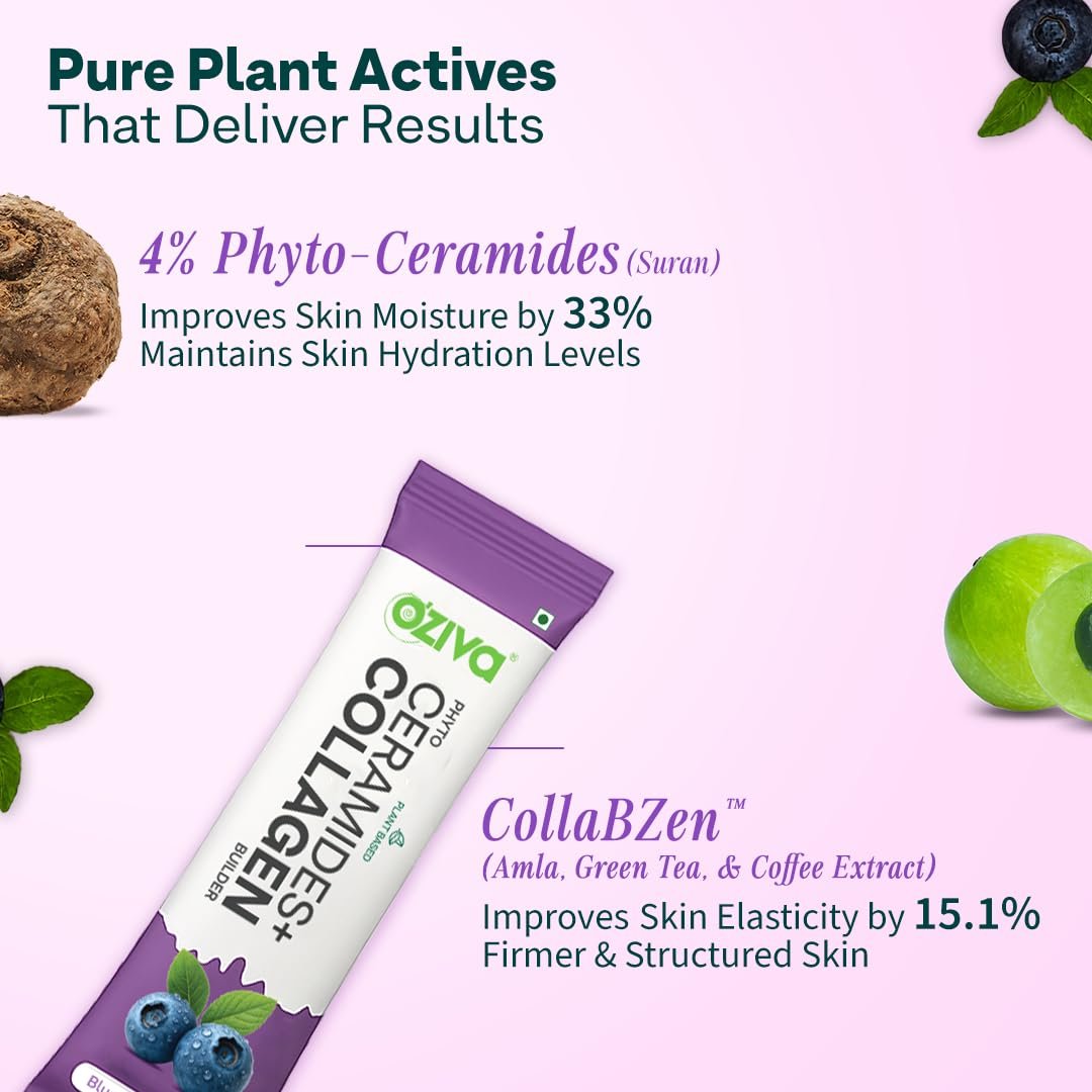 OZiva Phyto Ceramides+ Collagen Builder | For Mositure Retention, Barrier Repair & Hydration Boost | With Suran Extracts, CollabZen & SesZen-Bio | Blueberry Flavour | 90 Sachets (Pack of 3)