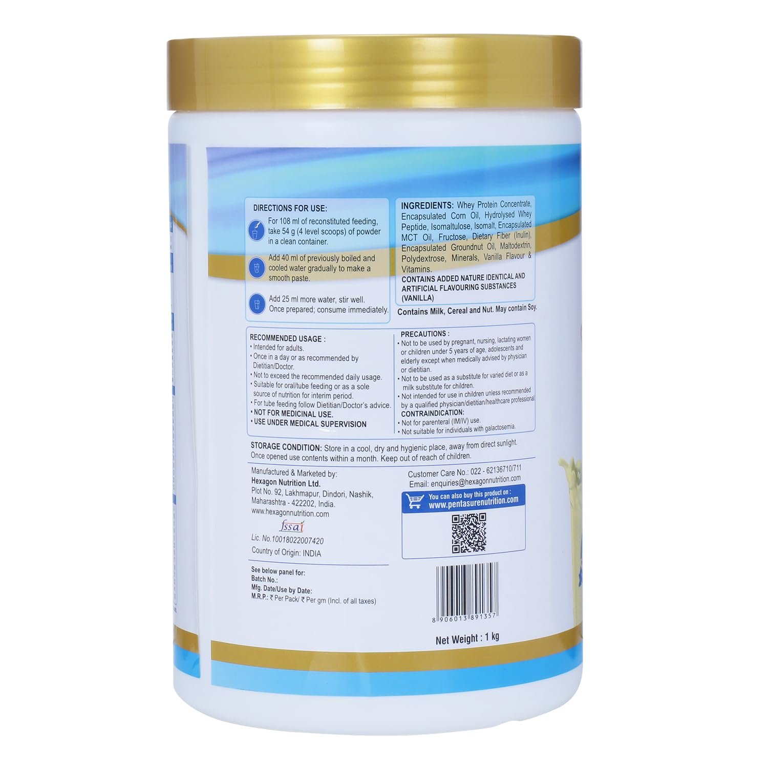 PENTASURE 2.0 High Protein High Calorie [Lean Weight Gainer Supplement] – Vanilla flavour -Pack of 1Kg powder