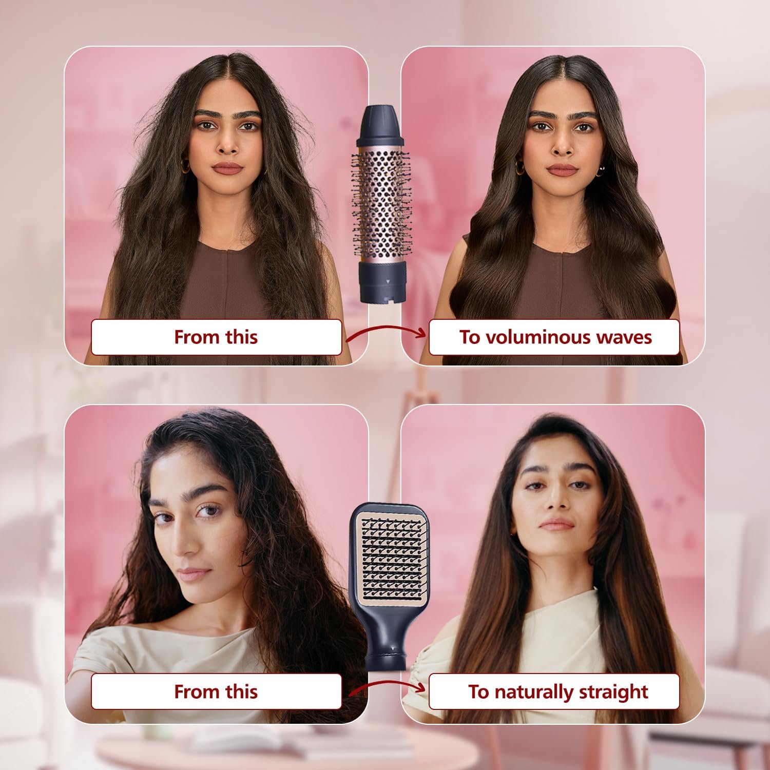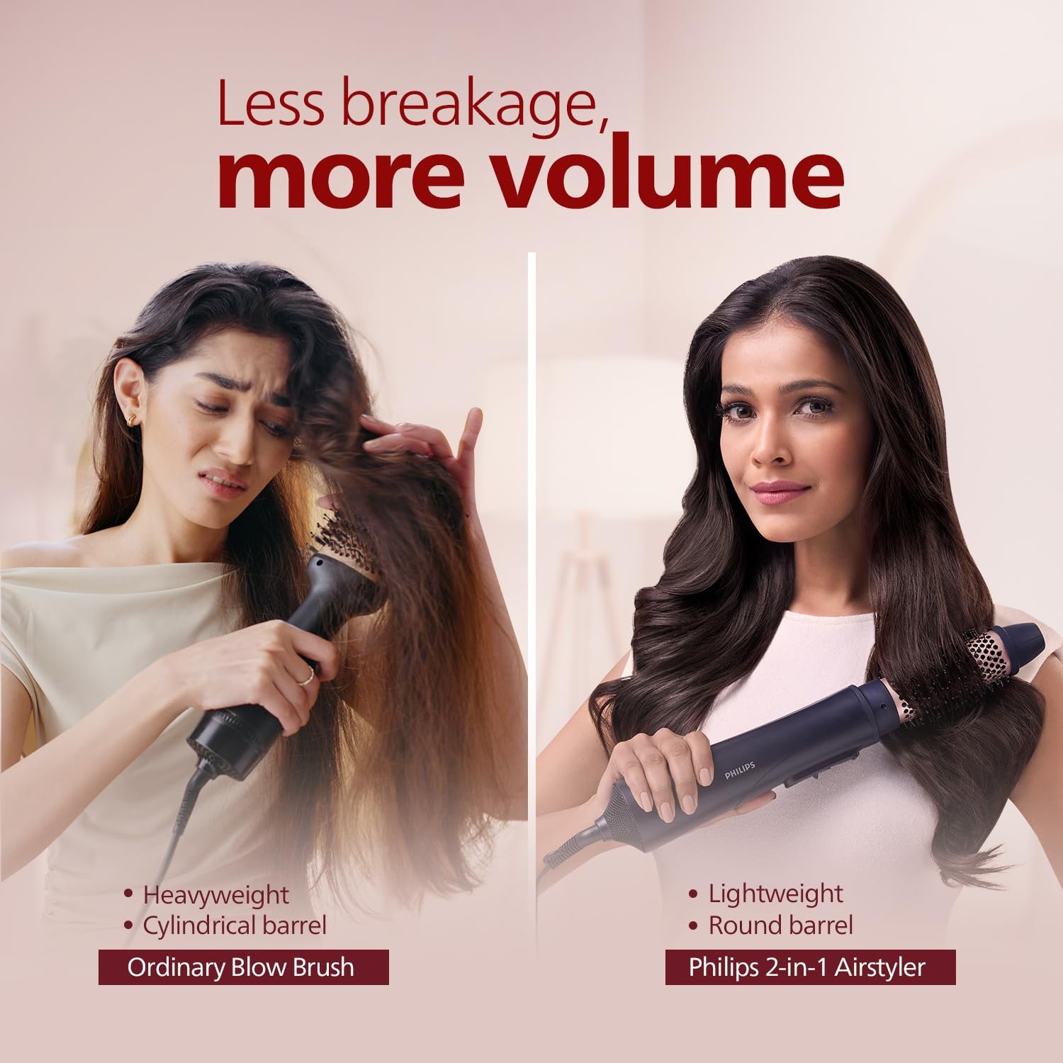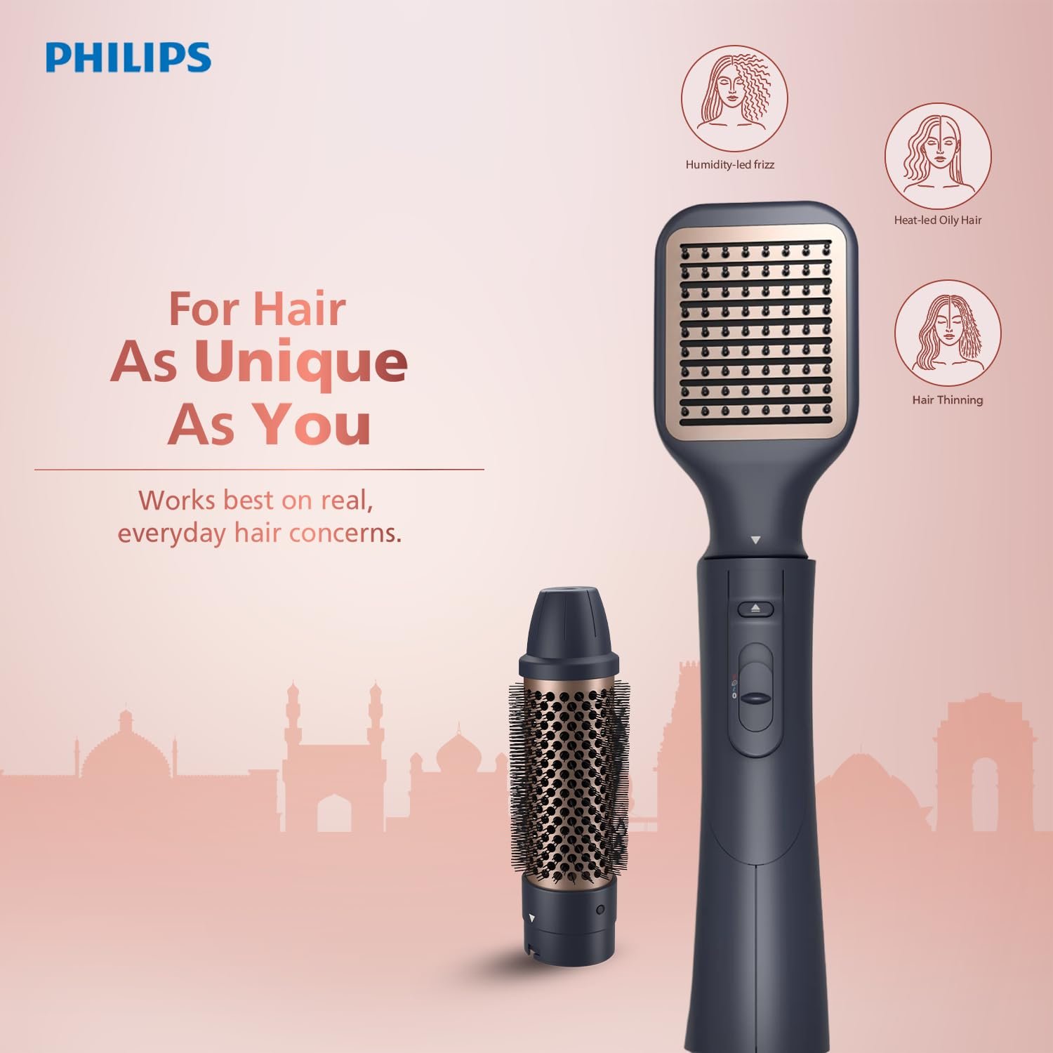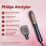 Philips 2-in-1 Airstyler | India’s No.1 Hair Styling Brand | 3X Volume | 50% Less Hair Breakage | Hot Air Brush/Volumizer | 2 Attachments for Straight, Wavy, Curly Looks | 3 Heat Settings | Cool Shot