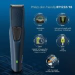 Philips Beard Trimmer for Men | India’s No.1 Trimmer | DuraPower Technology | Lasts 4x Longer | Close Trim with Skin Protect Comb | Self Sharpening Blades | Durable | Cordless | Charging Indicator | Travel Lock | No Oil Needed | 2 Year Warranty | BT1232/18,Blue