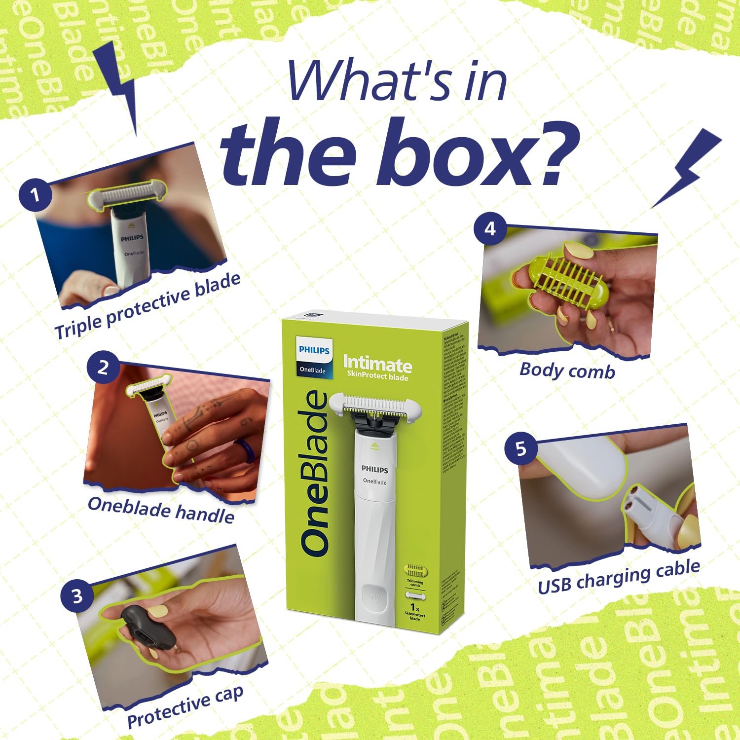 Philips OneBlade Intimate Trimmer & Electric Razor | Unmatched Skin Protection for Private Parts, Bikini, Underarm & Intimate Areas | No post shave irritation | For Women & Men | QP1924/20