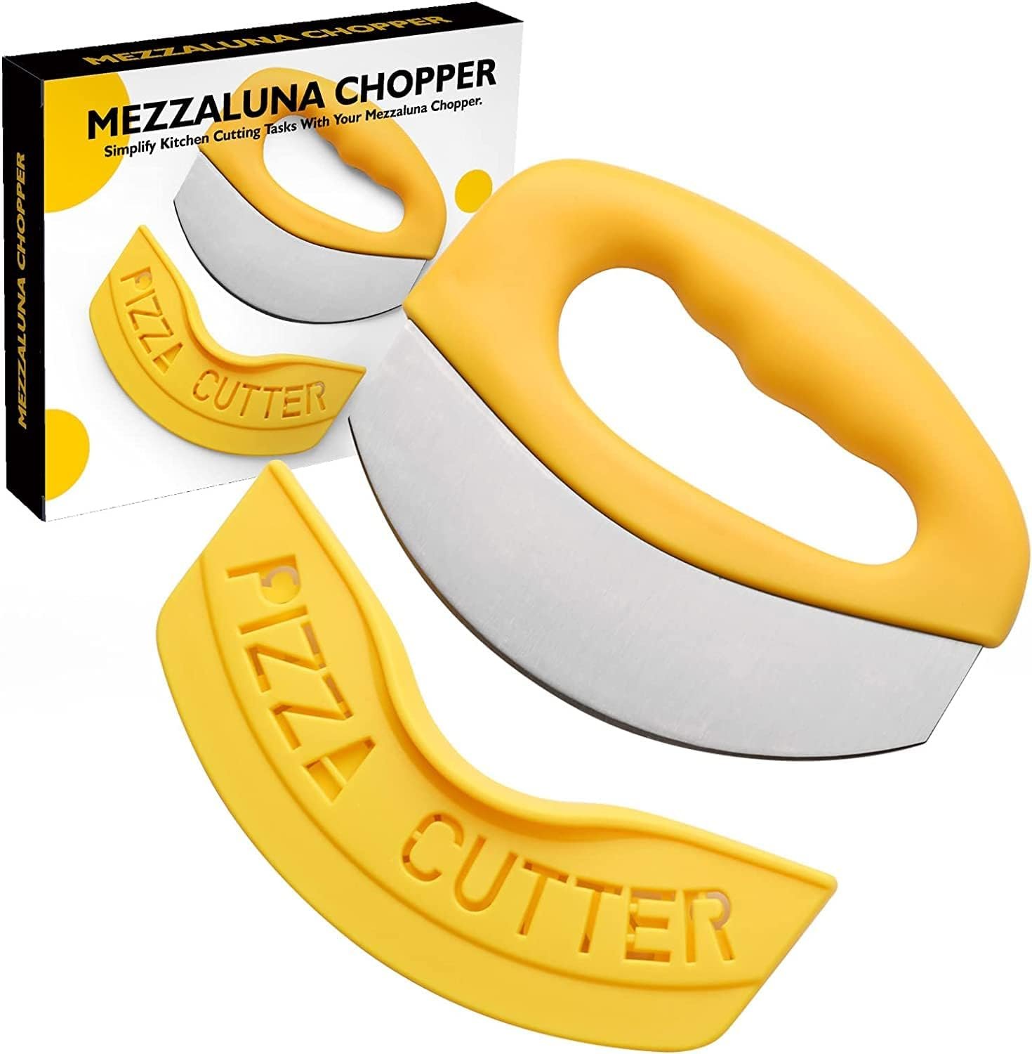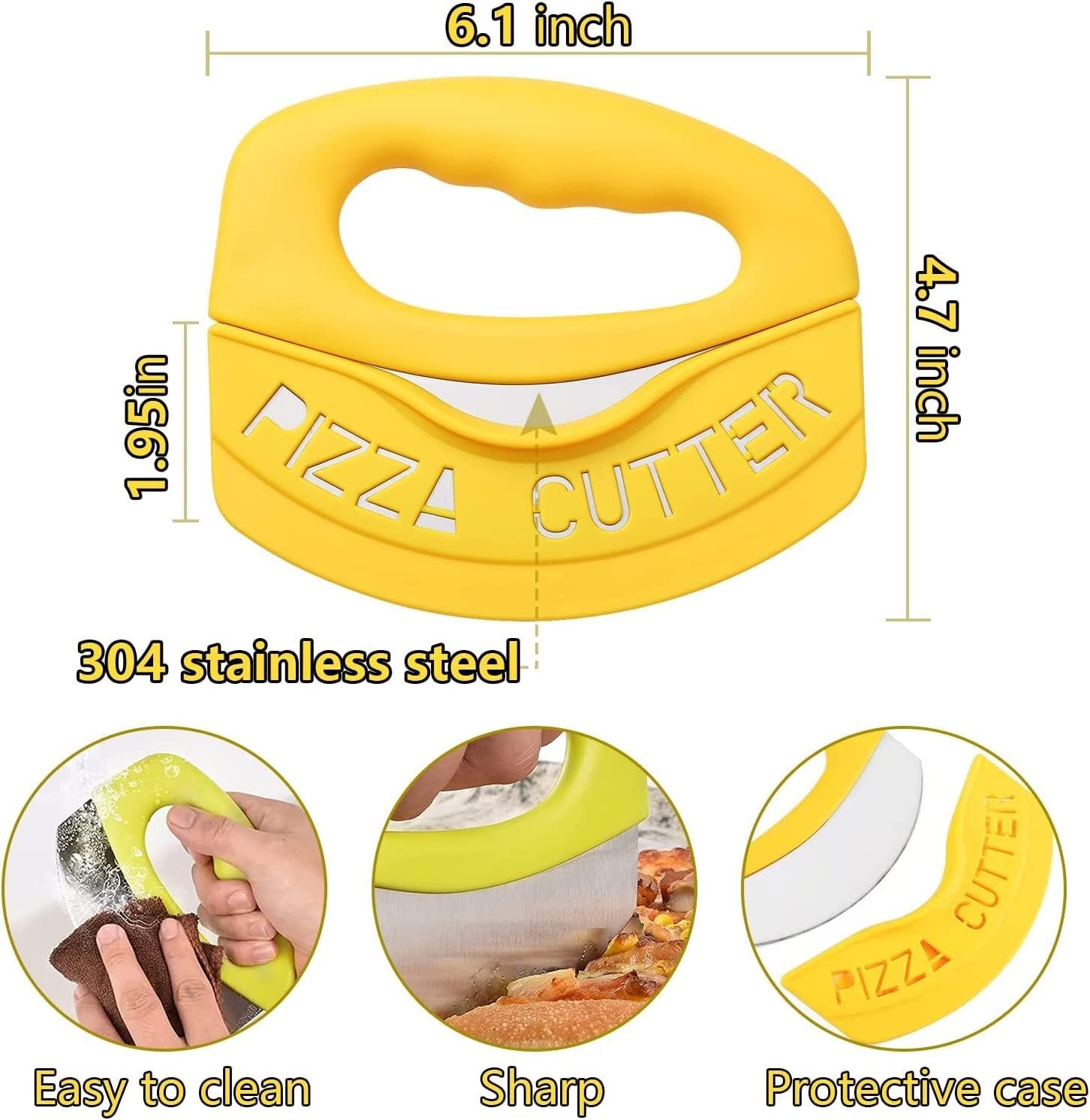 Pizza Cutter Food Chopper-Super Sharp Blade Stainless Steel Pizza Cutter Rocker Slicer with Protective Sheath Multi Function Pizza Knife Kitchen Tools,Dishwasher Safe – Yellow