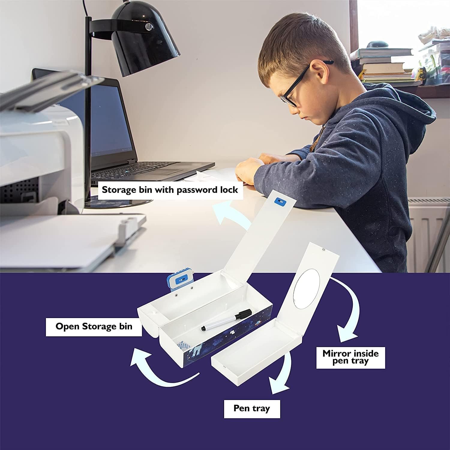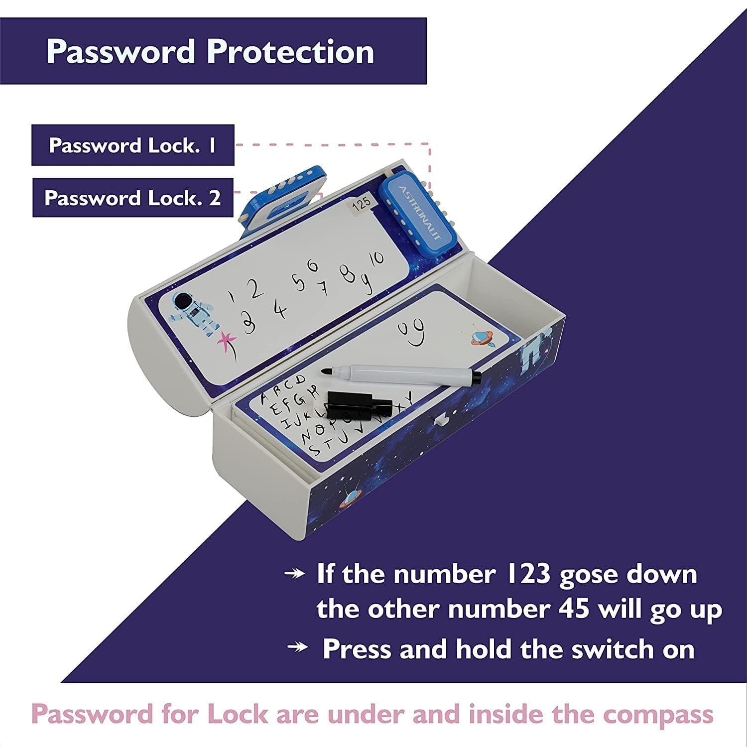 Plastic Compass Box for Kids – Password Protection School Kids Pencil Box Stationary Set with Different Compartments for Storage of Kids,Boys,Girls, Essentials (Blue- Astronaut-New)