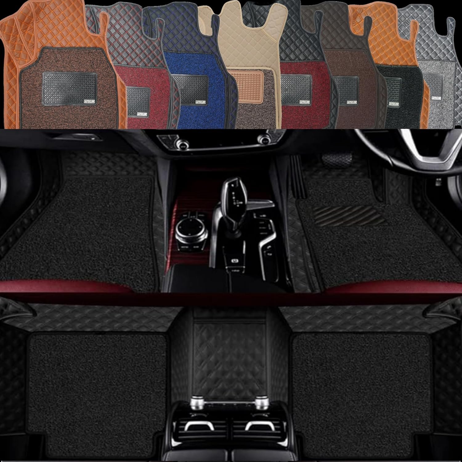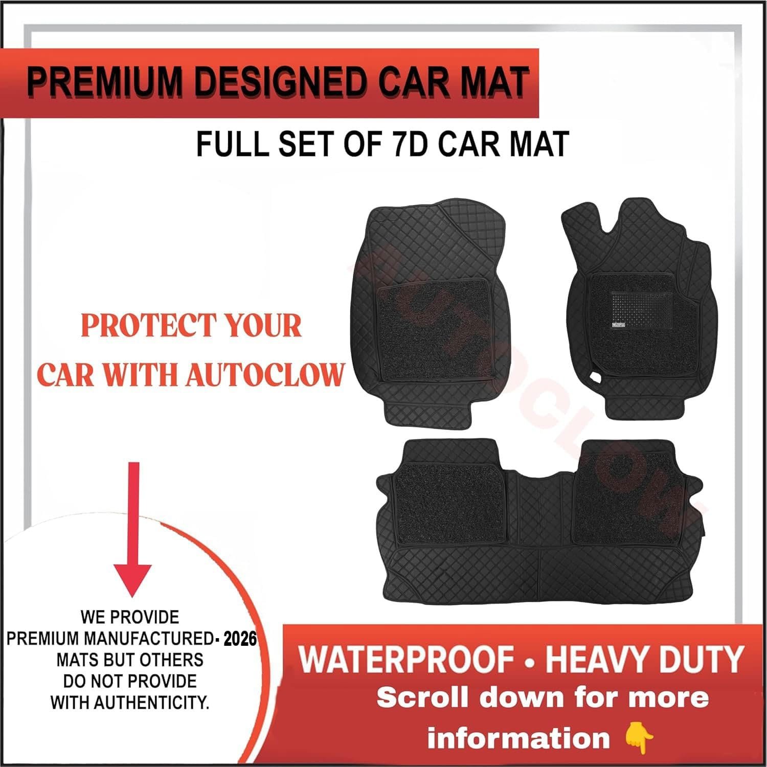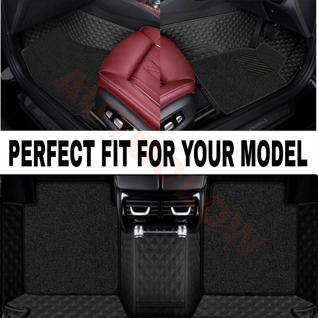 Premium 7D Car Mat Full Set for Mahindra XUV 3XO (Model : 2024-2026) || Luxury Leather Dual-Stitch Full Set 7D Car Floor Mat || 100% Waterproof || Color : Black-Black (Design-1)