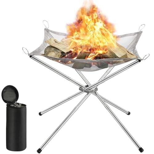 Proberos® Portable Fire Pit for Camping, Full Stainless Steel Fire Pit DIY Assembly Fire Pit Outdoor Folding Firepit Fireplace with Heat Resistant Gloves & Carrying Bag
