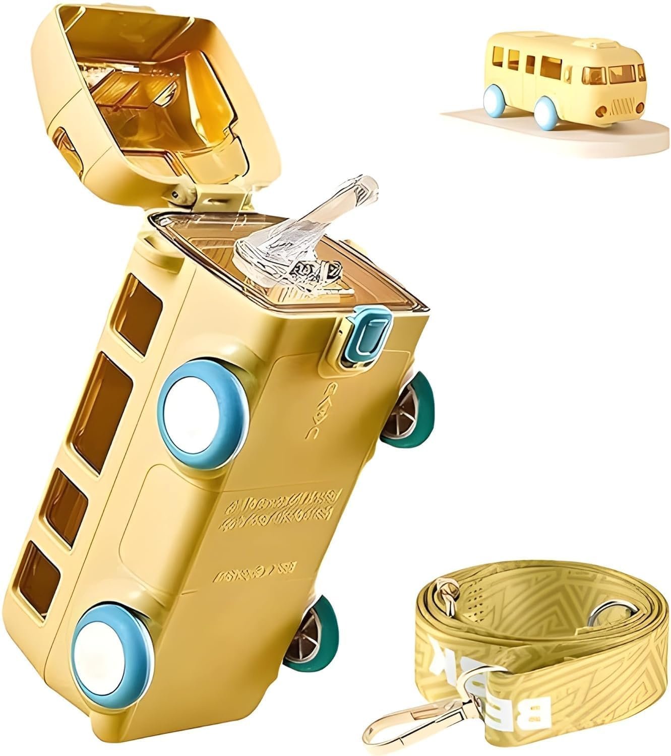 Prokart Premium Bus Water Bottle With Strap For Kids | Cute Drinking Jug with Wheels Leakproof, 500 ML | Portable Drinking Bottle for Kids Girls & Boys School Supplies (Yellow)