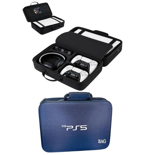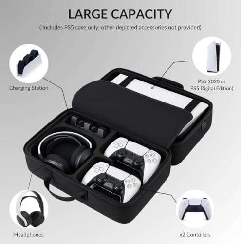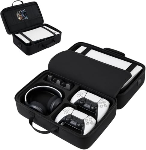 PSS PS5 Travel Bag Briefcase Hard Shell Carrying Case for PS5 Console Protective Storage Bag Shockproof Compatible with PS5 Console/ Controller, Headset, Charging Dock, Games Accessories – Black