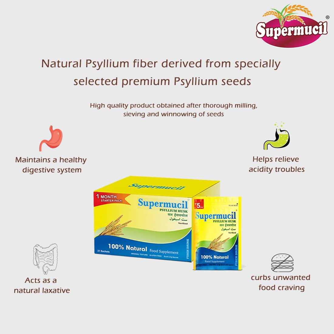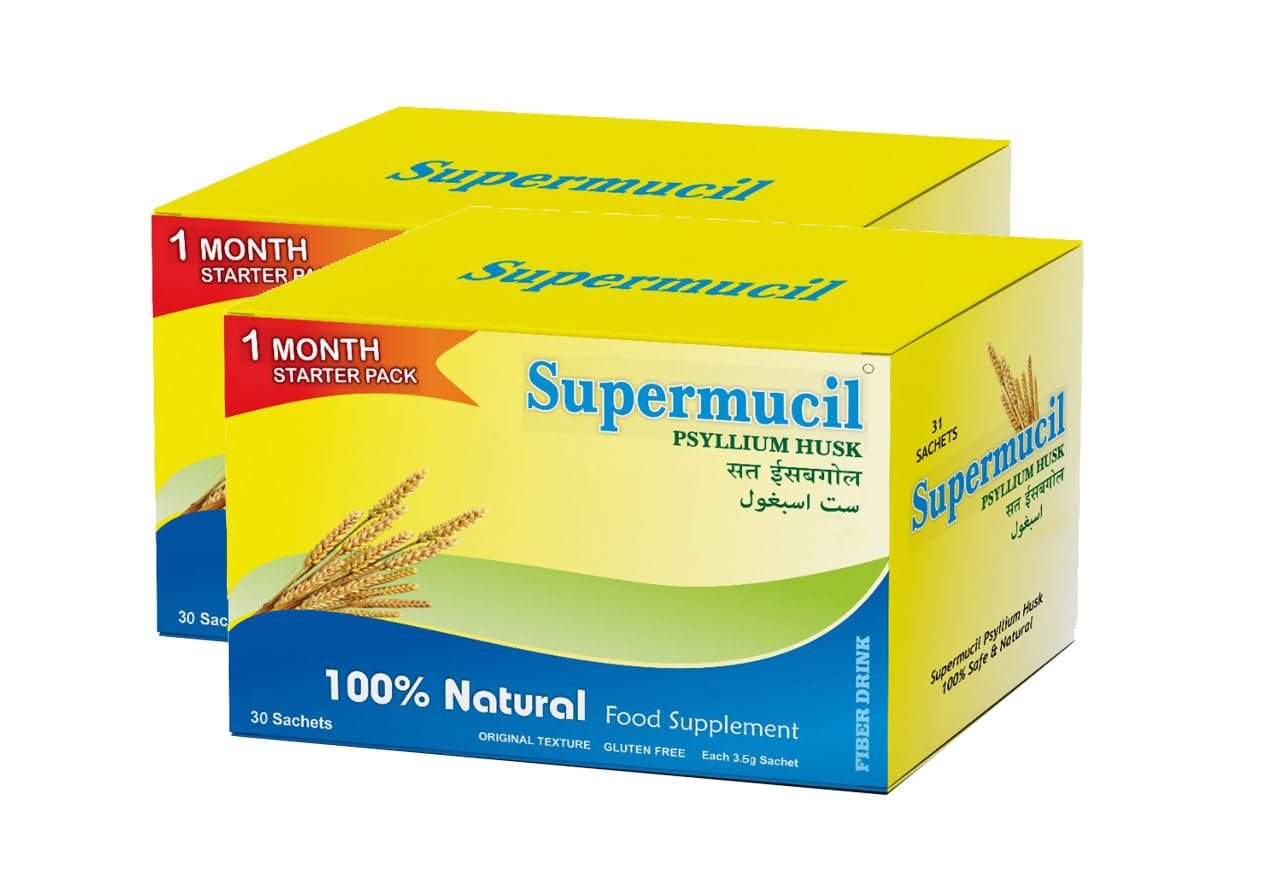 Psyllium Husk (Sat Isabgol) Sachets: 2 Month Pack: 30 X 2 = 60 Sachets (3.5 Grams each) (210 Grams)