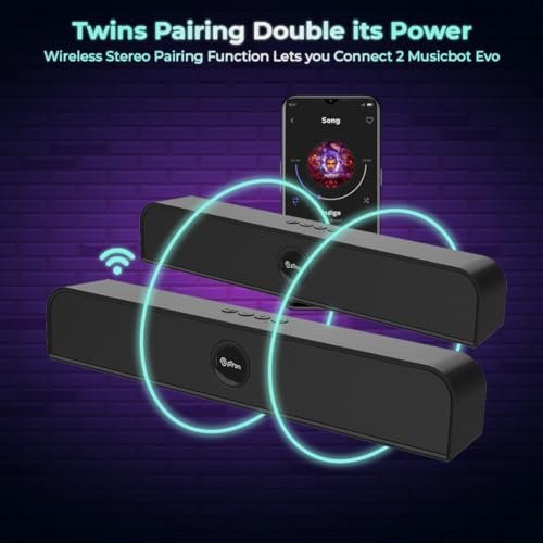 pTron Musicbot Evo 12W Bluetooth Speaker 5.0 Mini Soundbar, 10Hrs Playback Time, Stereo Soundbar for Phone/TV/Laptop/Tablets/Projectors, Multi Modes Aux/TF Card/USB Drive & TWS Pairing (Black)