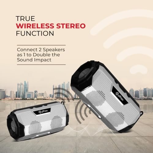 #pTron #Newly #Launched #Fusion #Rock #16W #Portable #Bluetooth #Speaker #Dual #Drivers #6Hrs #Playtime #Speaker #PhoneLaptopTablets #AuxTF #CardUSB #Drive #Playback #TWS #Function #SilverBlack