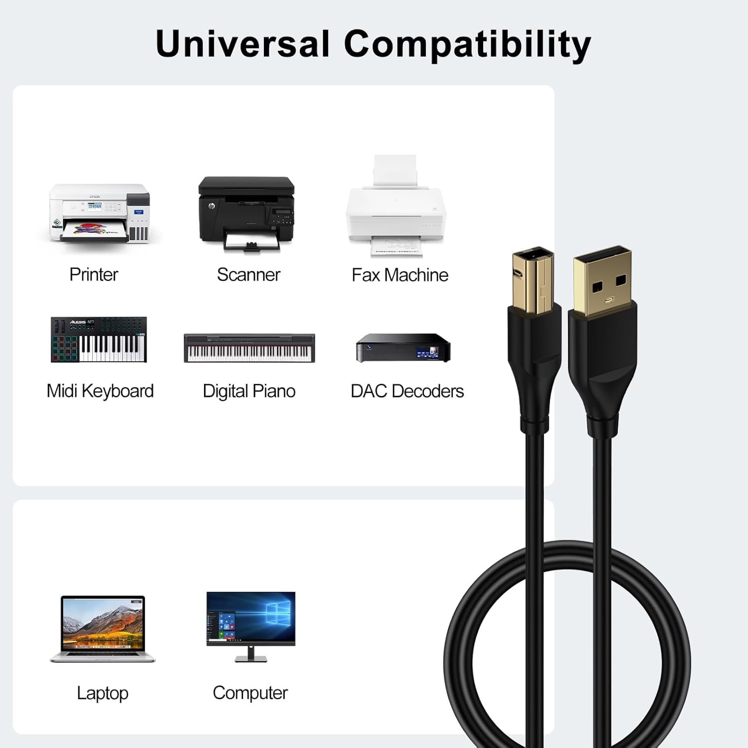rts High Speed USB 2.0 (1.5 Meter) Printer Cable USB Scanner Cable A Male to B Male Compatible with Printers, Scanner for Canon, Brother, Dell, HP, Samsung, Lexmark, Panasonic 2 Year Warranty.
