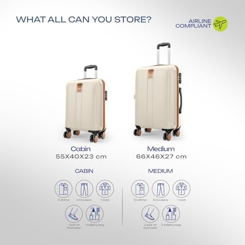 Safari Thorium Royale 8 Wheels Set of 2 Trolley Bags Hard Case Polycarbonate Luggage, TSA Lock, Wet Pouch Organized Interior, Suitcase for Travel, Trolley Bags for International Travel, Vanilla Tan