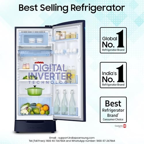 Be the first to review “Samsung 183 L, 5 Star, Digital Inverter, Direct-Cool Single Door Refrigerator (RR20D2825HV/NL, Himalaya Poppy Blue, Base Stand Drawer)”