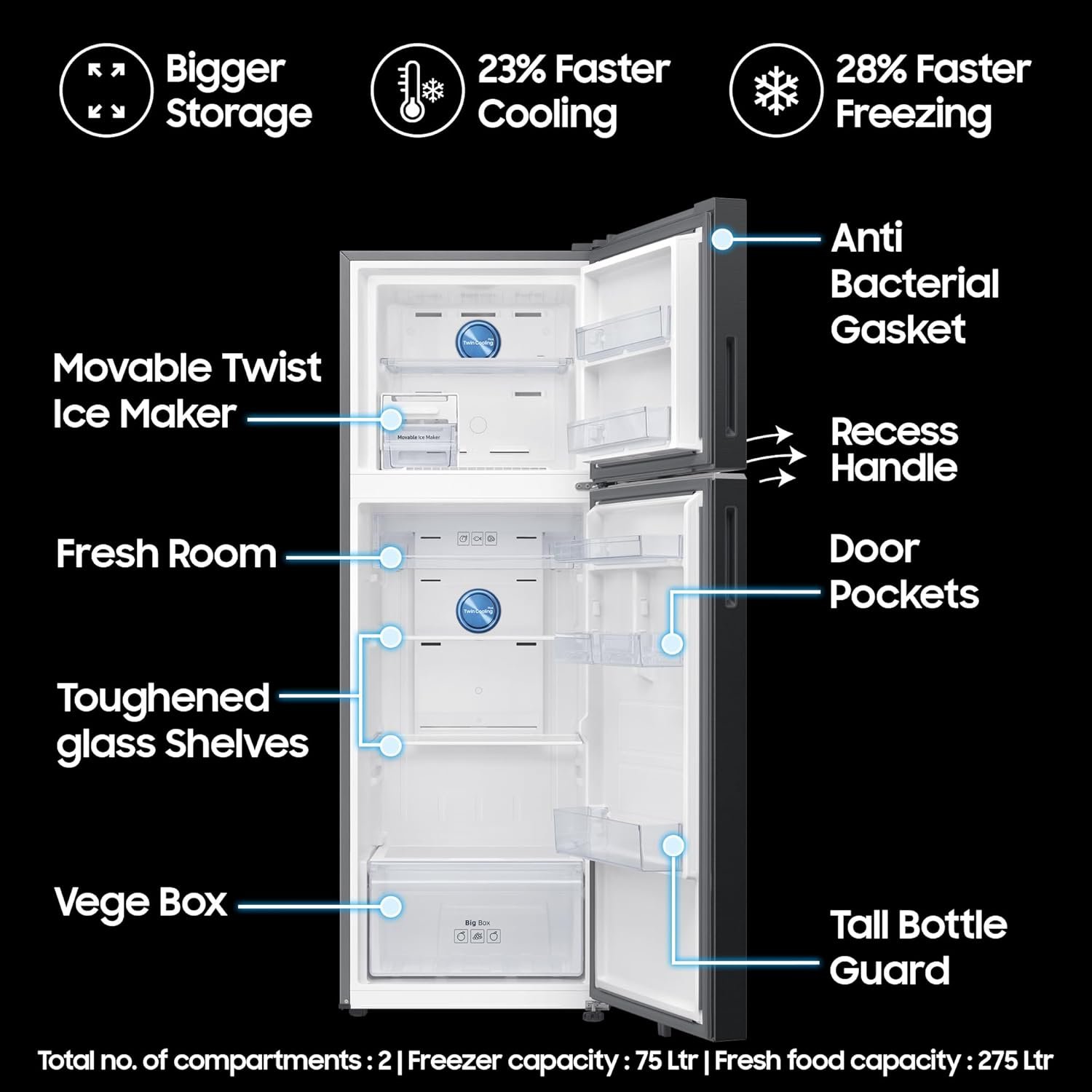 Samsung 350 L, 3 Star, Convertible 5-in-1, Digital Inverter, Frost Free Double Door, WiFi Bespoke AI Refrigerator (RT38HG5A23BXHL, Luxe Black, 2026 Model)