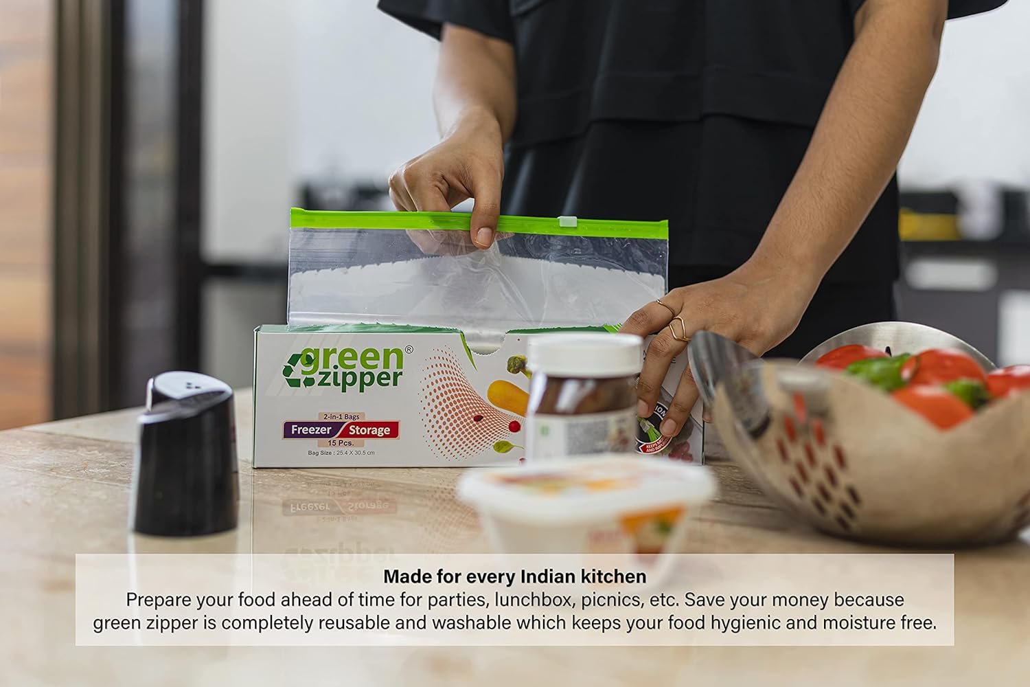 Seal Freezer Food Storage Bags 15 Bags in 1 Box Microwave Safe, Re-usable, Washable, Transparent & BPA Free (SMALL)(Plastic)