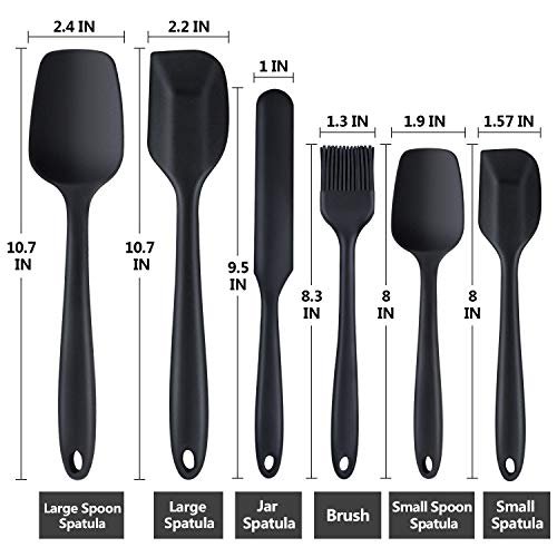 Silicone Spatula,6 piece Non-scratch Heat Resistant Rubber Spatula with Stainless Steel Core,Non Stick and Good Grips Spatulas for Cooking,Baking and Mixing(Black)