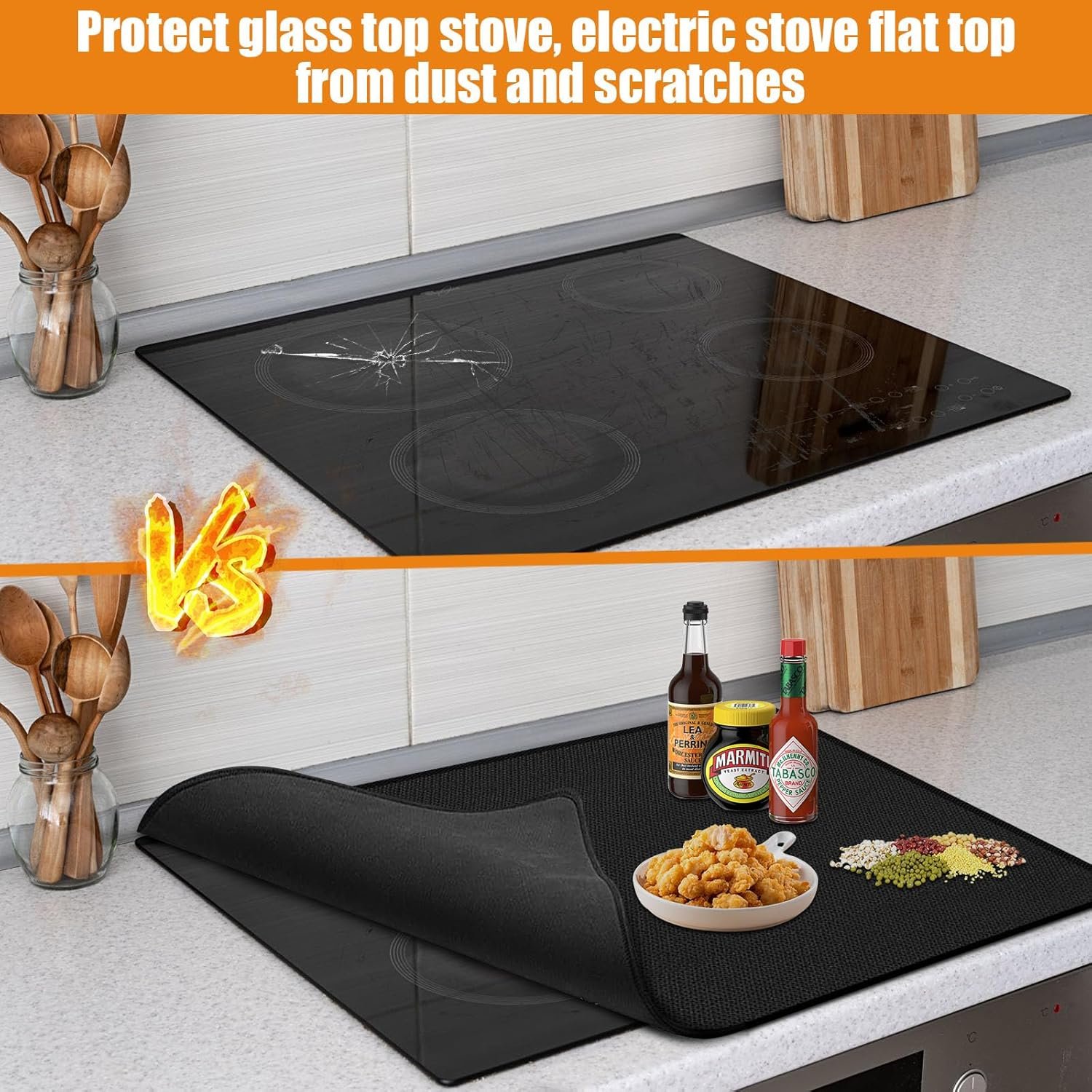 Silicone Stove Mat for Glass, Electric & Induction Stoves – 31x24in Protector Covers – Black