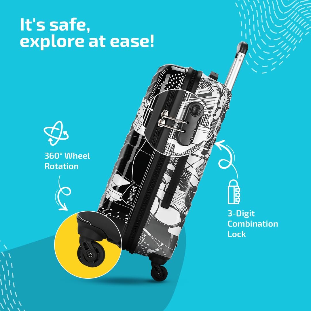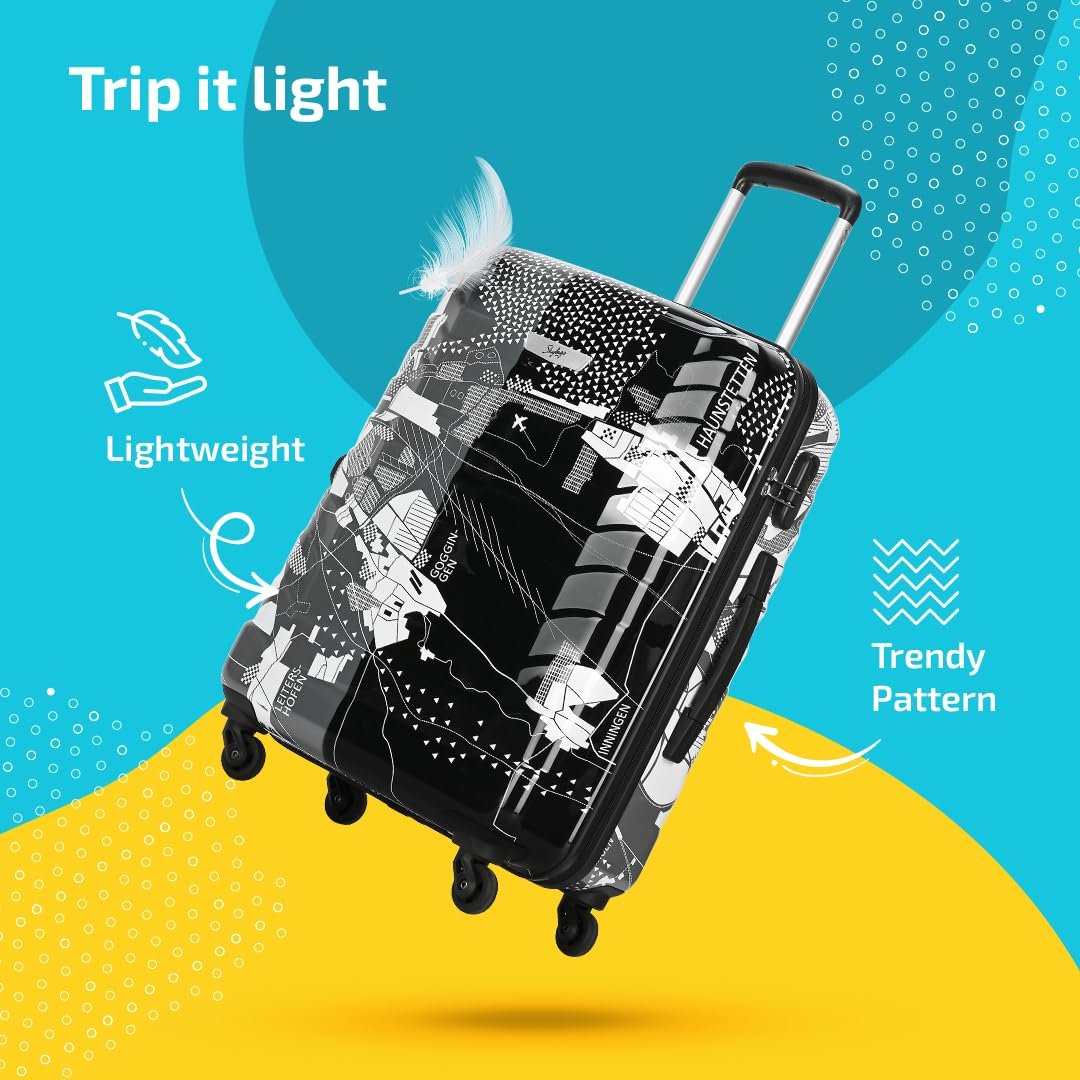 Skybags Medium Acrylonitrile Butadiene Styrene (Abs) Trooper Check-in Size Hard Luggage (65Cm) | Luggage Trolley with 4 Spinner Wheels and Resettable Combination Lock | Black