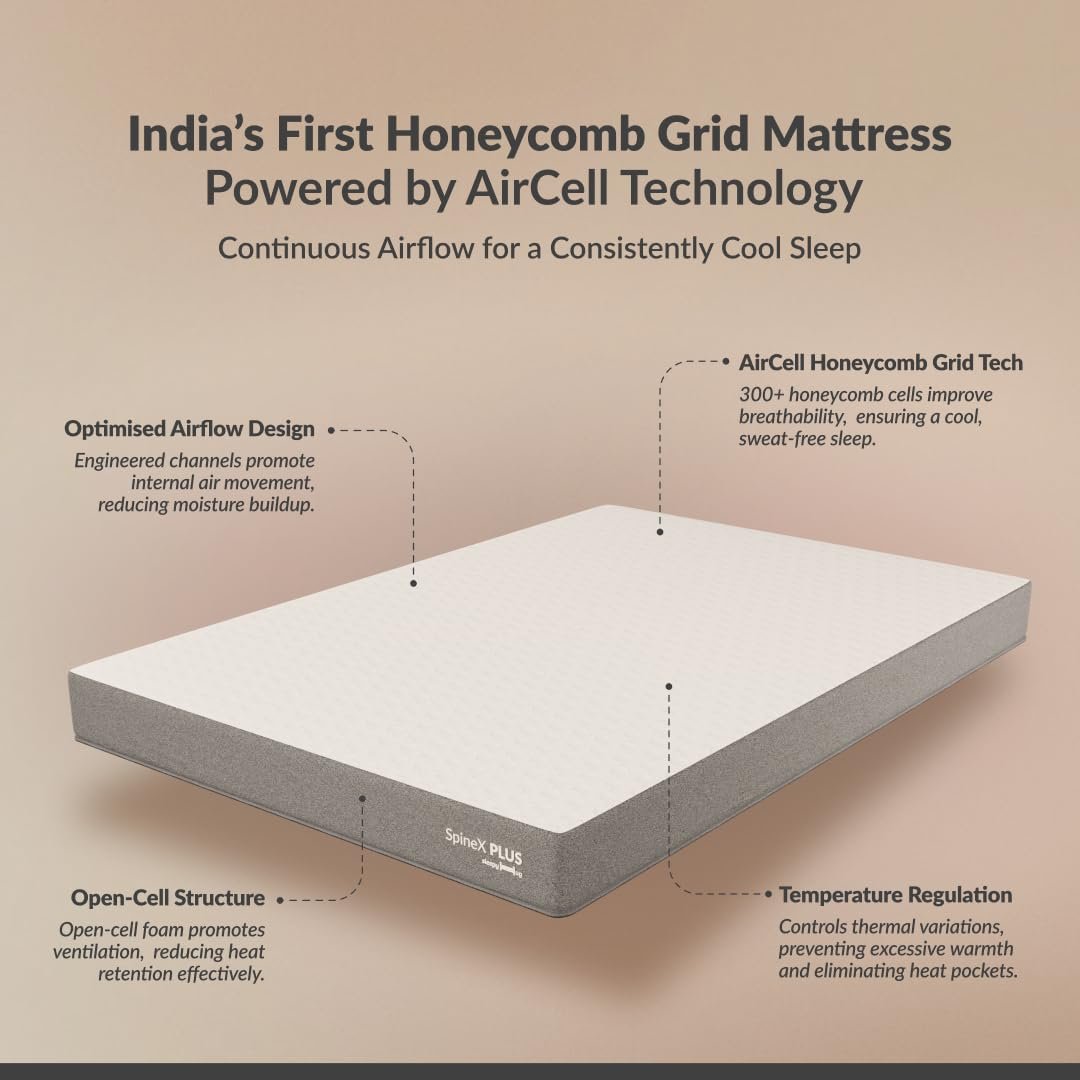 Be the first to review “SleepyHug Ortho SpineX Plus Mattress | 4 Inch HR Foam with AirCell Technology | 3-Zone Support for Back Pain Relief & Spine Alignment | 72x36x4 Inch (Single, Grey) | 5-Years Warranty”