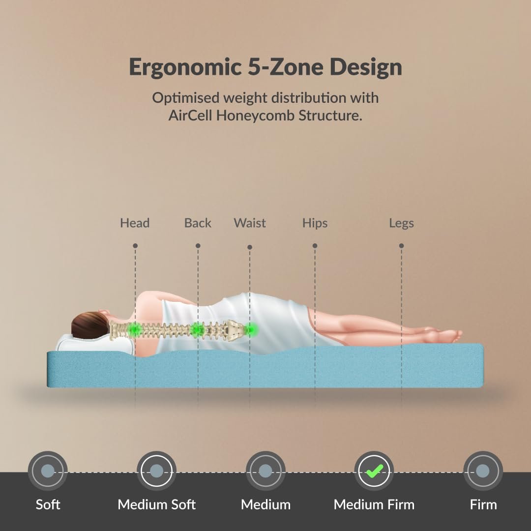SleepyHug Ortho SpineX Plus Mattress | 4 Inch HR Foam with AirCell Technology | 3-Zone Support for Back Pain Relief & Spine Alignment | 72x36x4 Inch (Single, Grey) | 5-Years Warranty