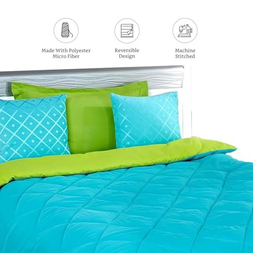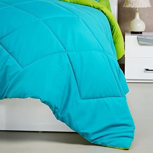 Solimo Microfiber Reversible Comforter, Single (Aqua Blue & Olive Green, 200 GSM)