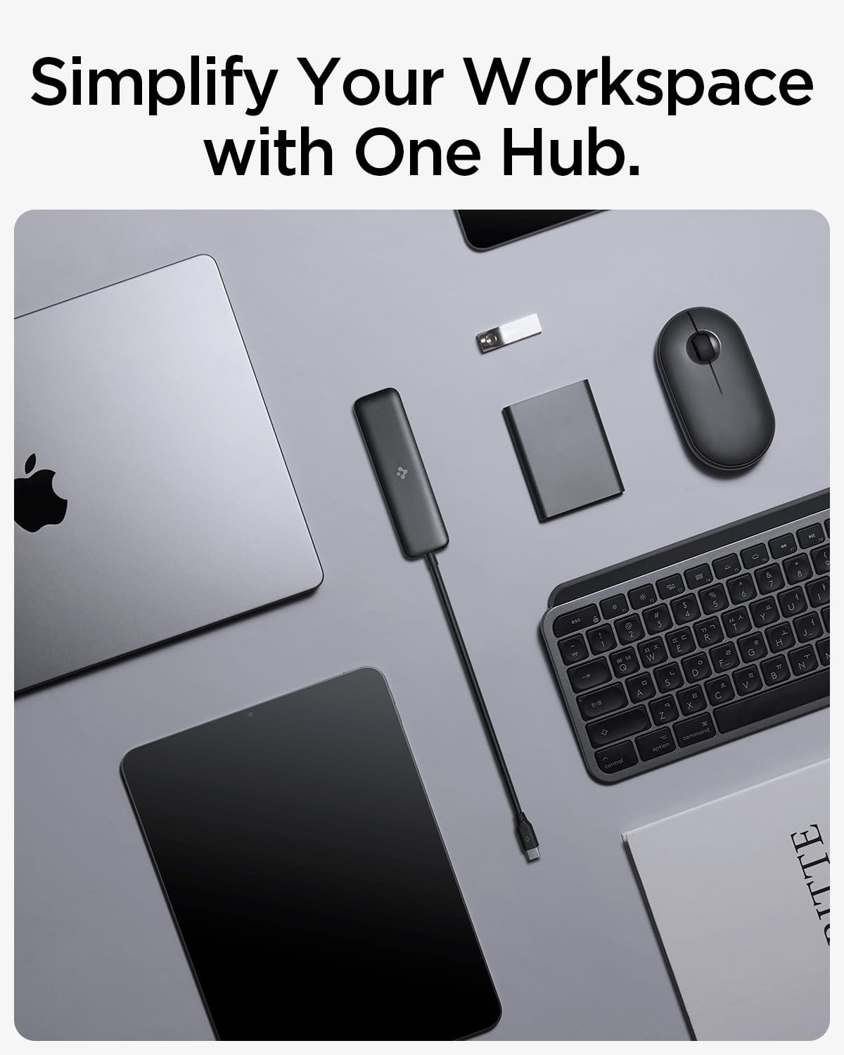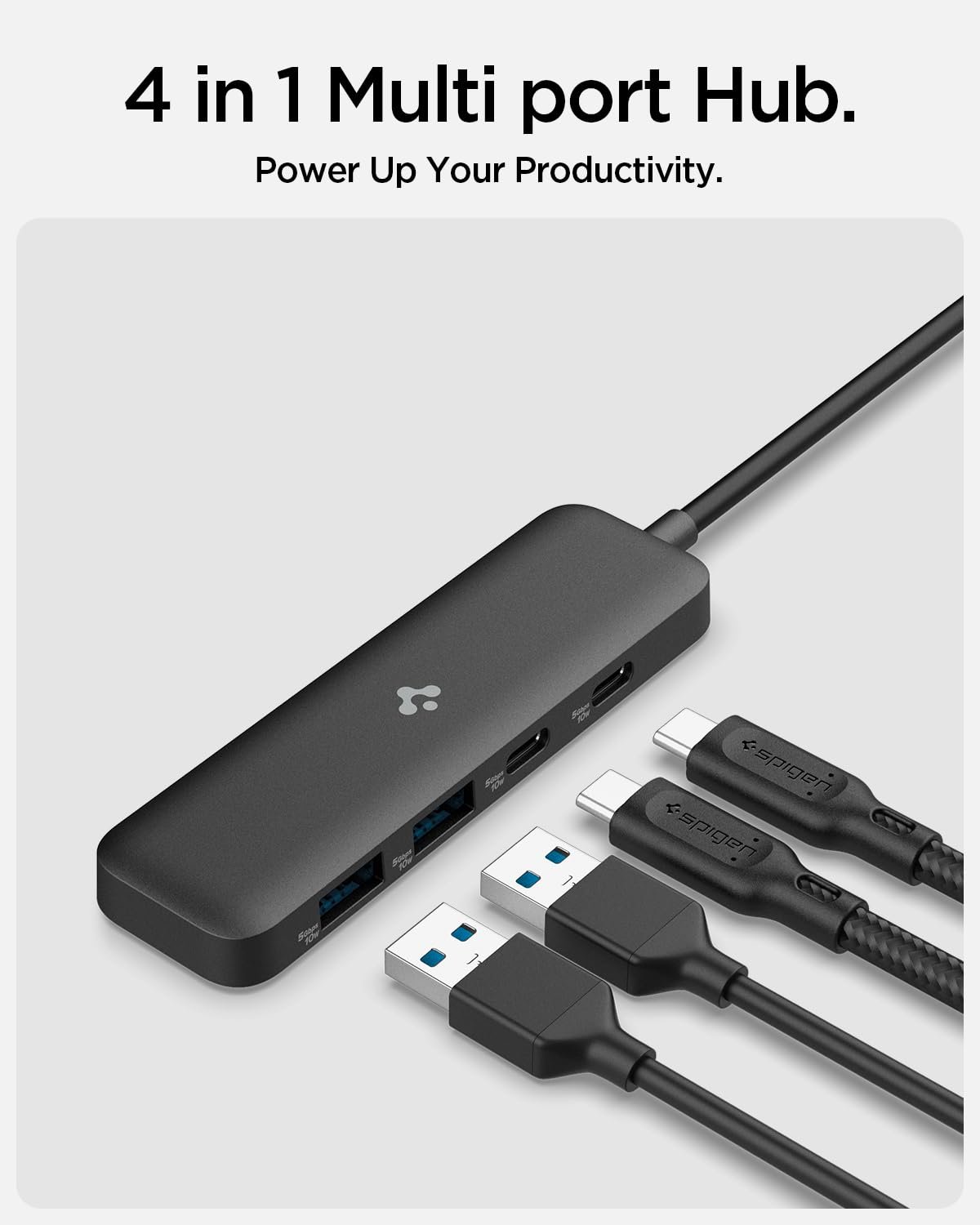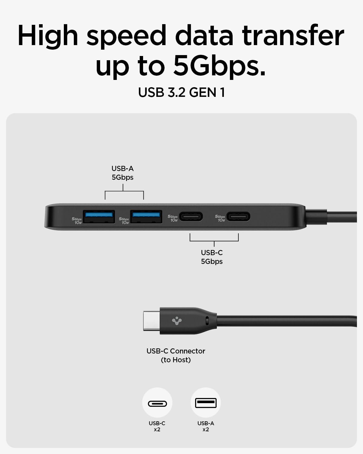 Spigen ArcDock 4-in-1 3.2 Gen 1, Type-C Hub with Multi Port (2 x USB-A 5Gbps, 2 x USB-C 5Gbps) for MacBook Air/Pro M1/M2/M3 and Laptops – Black