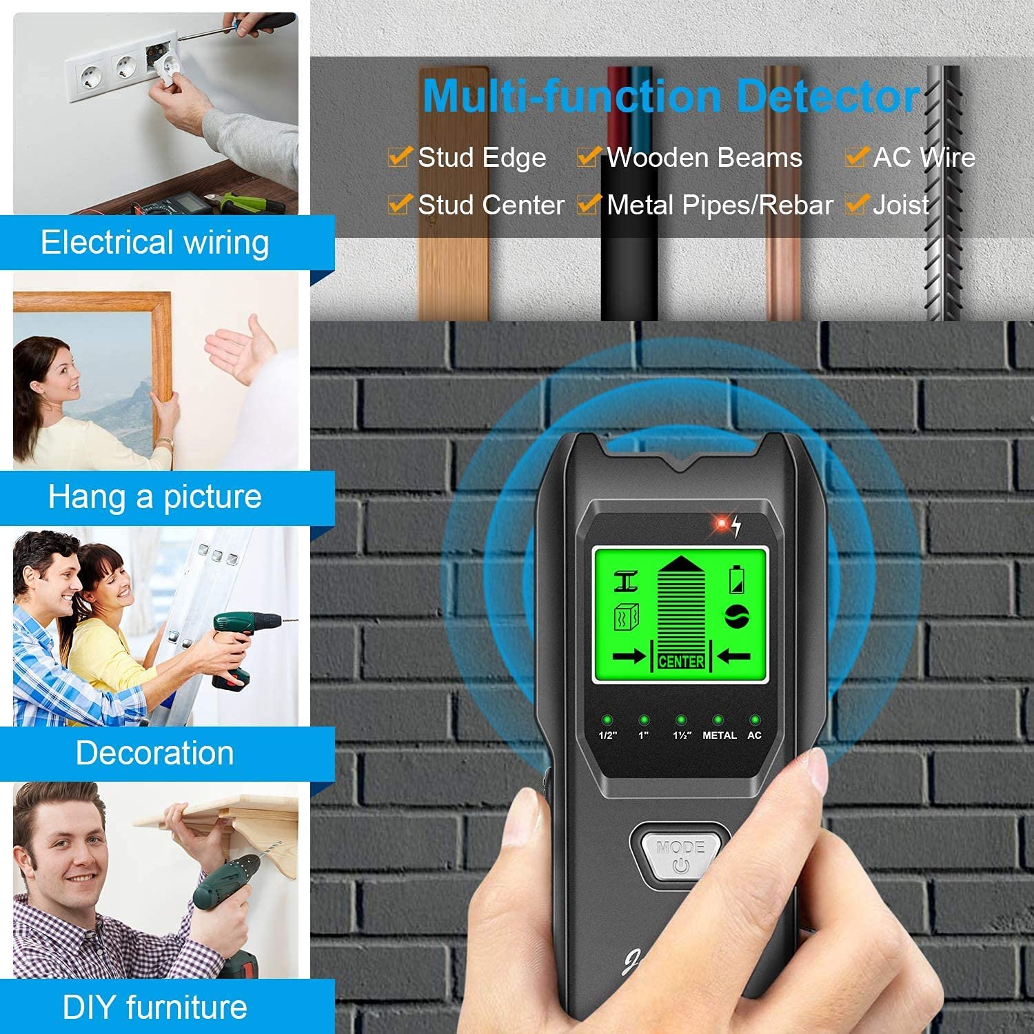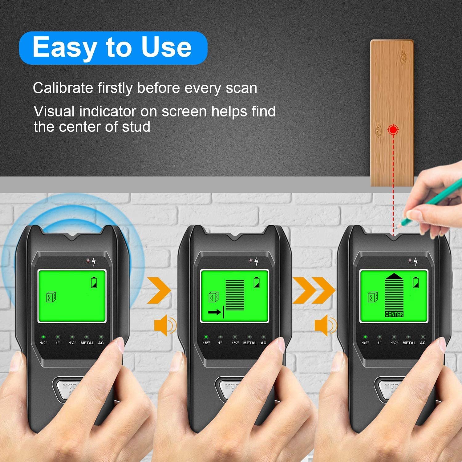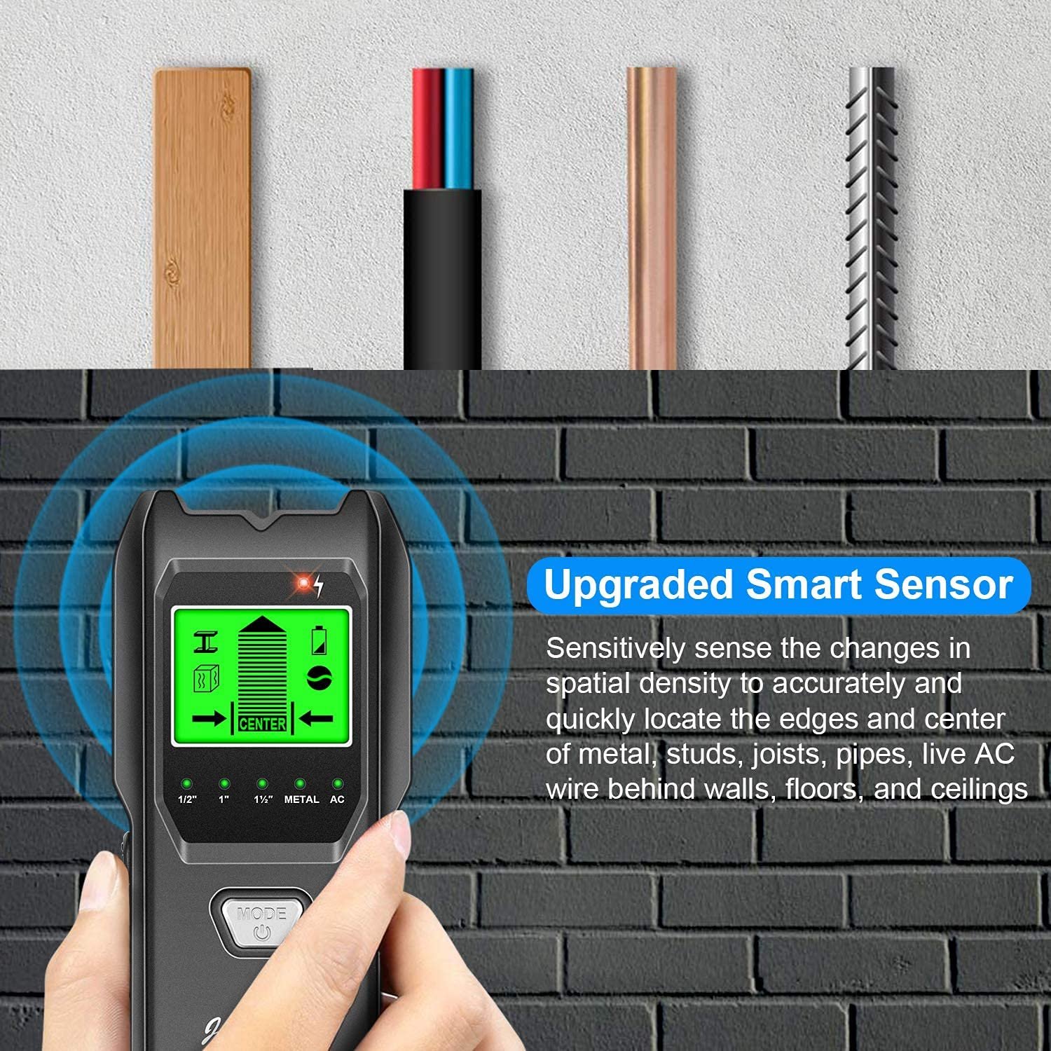 Stud Finder Wall Scanner, 5 in 1 Multifunction Stud Locator with Upgraded Smart Sensor, HD LCD Display and Audio Alarm for The Center and Edge of Metal, Studs, AC Wire, and Pipe Detection