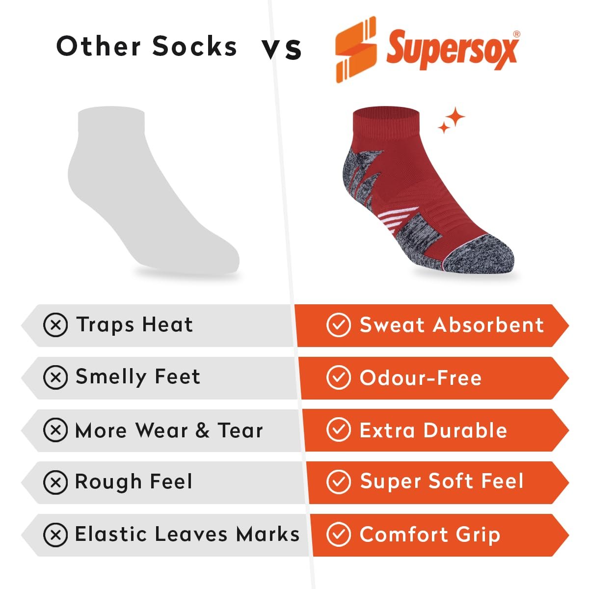 Be the first to review “Supersox Ankle Sports Socks For Men Combo, Made with Breathable, Anti Odour & Moisture Absorbent Combed Cotton with a Extra Durable Welt & Cushioned Bottom (Pack Of 3)”