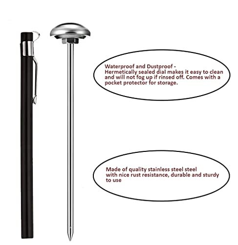 SYGA Pocket Thermometer, Waterproof, 5″ Stem, 1″ Dial, -10/110 Celsius