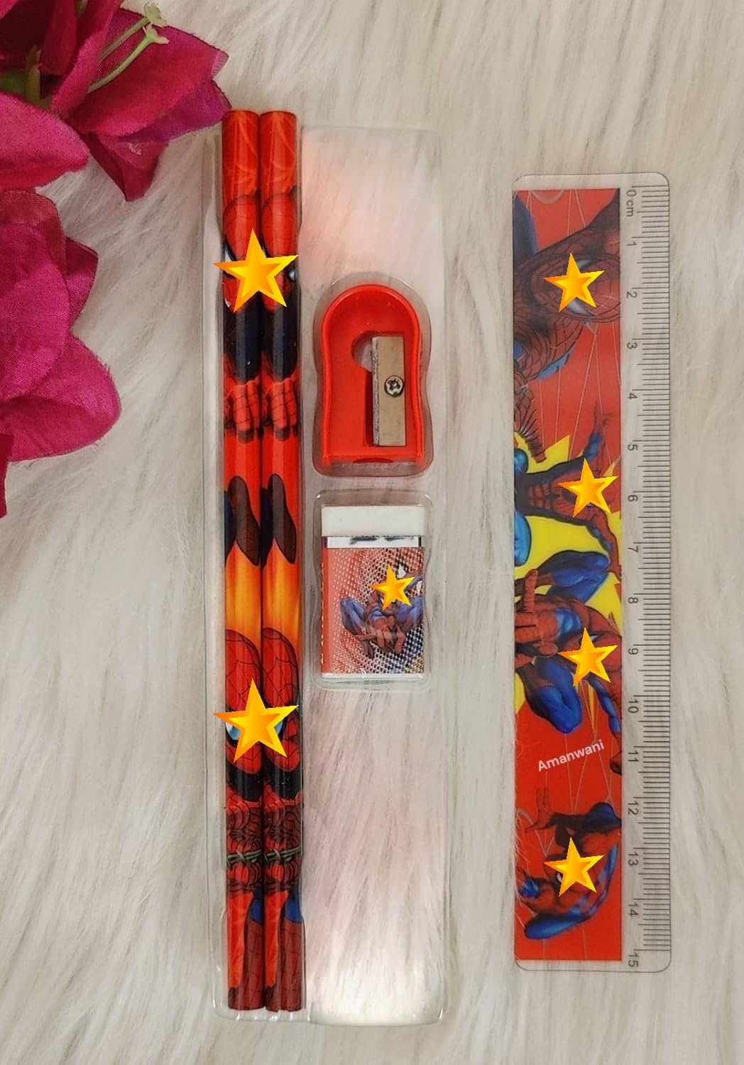 Tera13 Multicolor Cartoon Stationery Set (6 Pcs) Boys Kids Stationary Items Return Gifts, Ages 3+