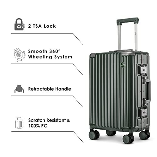 #CLOWNFISH #Stark #Series #Luggage #Polycarbonate #Hard #Case #Suitcase #Wheel #Trolley #Bag #Double #TSA #Locks #Forest #Green #Small #Size #cm22 #inch